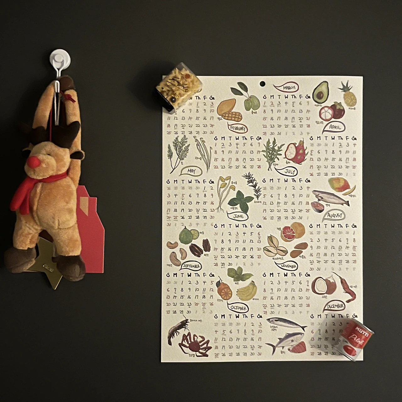 마무리로 현관문에는 내가 좋아하는 마그넷과 귀여운 달력이나 사진을 붙여두면 끝.