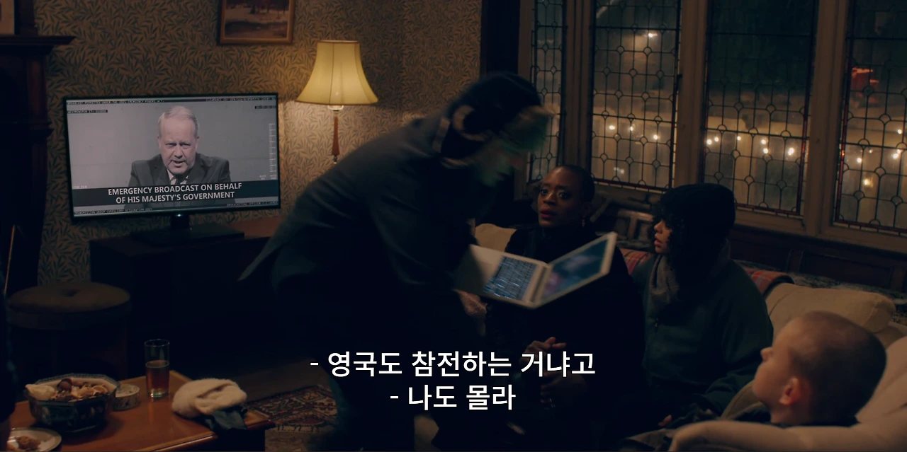 특히나 트럼프가 임기가 얼마 남지 않은 시점에 돌발적으로 중국을 겨냥해 미사일 발사했다는 1화의 전개는 충격적이다. 함께 모여 저녁 식사를 하던 가족은 전시체제에 돌입했다는 뉴스에 걷잡을 수 없이 혼란스러워한다.