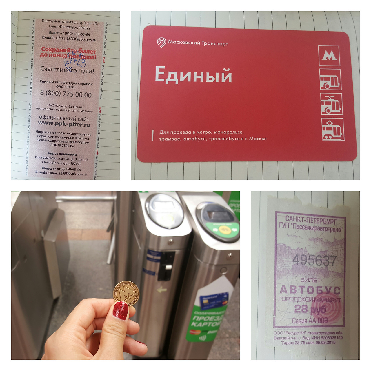 사전 정보 없이 버스에 올랐다면 당황스러울 수 있다. 요금통이 없기 때문이다. 자연스럽게 빈자리에 가서 앉으면 누군가 다가와 손을 내민다. 상트페테르부르크 버스비는 28루블. (빨리 내기 위해)손에 꼭 쥐고 있던 버스비를 내밀면 차장 할머니가 허리춤에 차고 있는 전대에서 표 뭉치를 꺼내 한 장을 찢어서 건네곤 다른 사람에게로 간다.