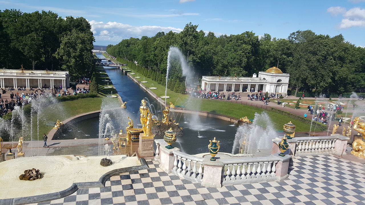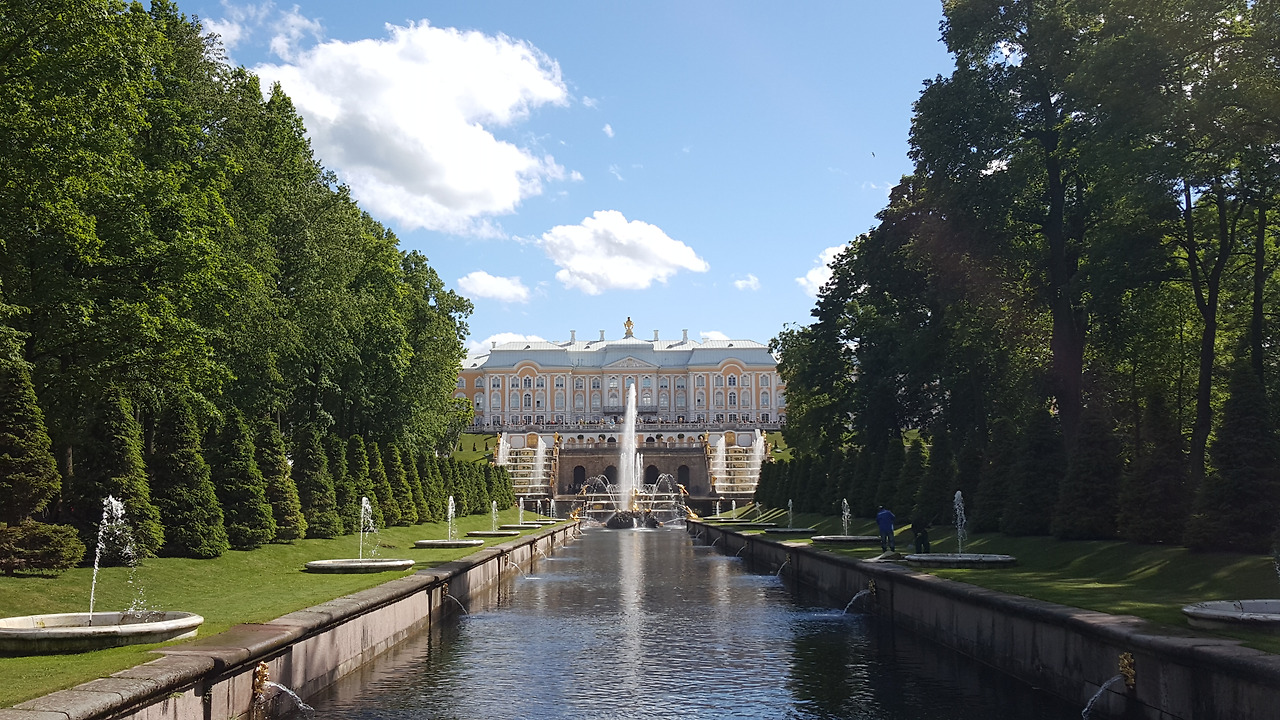 유럽을 향하고 있는 궁전. 유럽을 바라보며 서구화를 다짐했을 표트르 대제를 떠올려볼 수 있는 곳이다. 궁전 앞 분수 뿐 아니라 아래 공원 곳곳에 배치된 분수도 재미있는 볼거리다. 특히 '장난분수' 앞을 지날 때면 아이들의 까르르 웃는 소리가 끊이질 않는다. 분수를 작동시키는 사람이 사람들이 지나갈 때 갑자기 물이 나오게 해 사람들을 깜짝 놀라게 하는데, 이미 이걸 아는 아이들은 그 옆에서 '언제 분수를 트나' 눈치를 보고 있다 분수가 솟구치면 재빠르게 도망치며 깔깔댄다. 물세례를 받고 깜짝 놀라는 사람들을 지켜보며 남 몰래 웃었을 왕을 생각하면 왠지 나도 웃음이 난다.