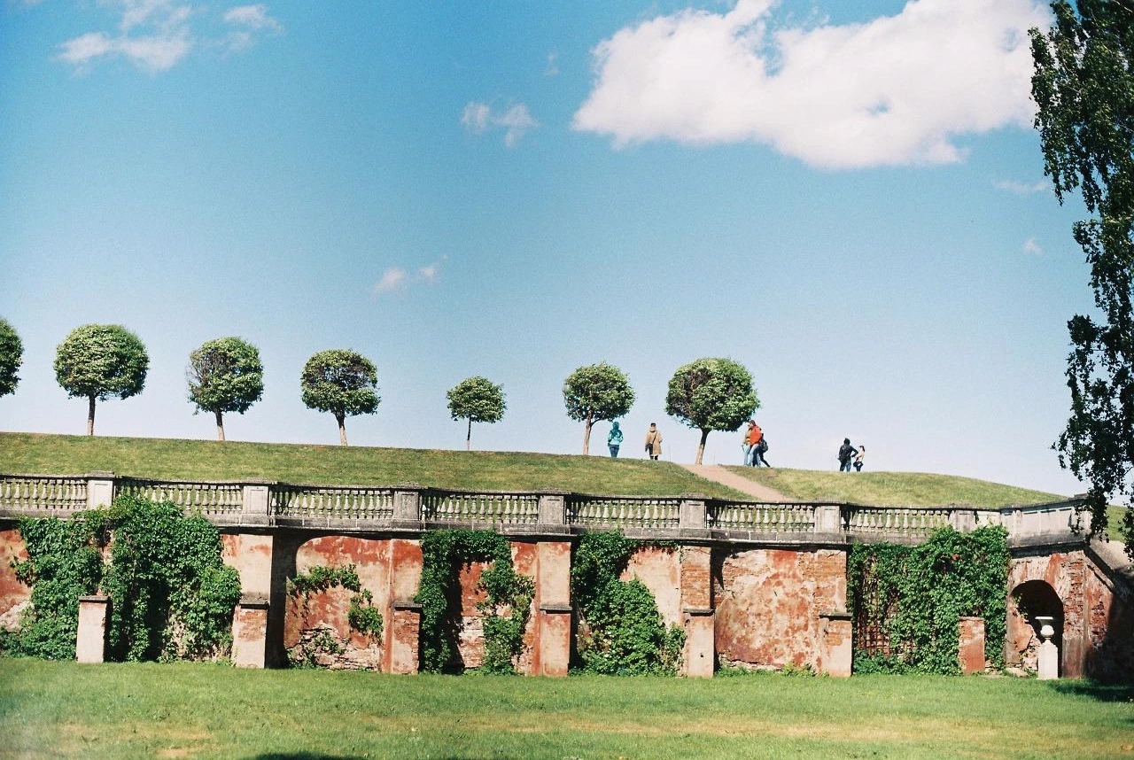 1717년 표트르 대제 당시 항후 예카테리나 1세의 여름별장으로 지어지기 시작했다고 한다. 이후 궁전 앞 공원이 조성되고 또 주변에 여러 건물이 들어섰다. 각 시기 어떤 풍이 유행했는지, 궁의 주인이 어떤 풍을 좋아했는지에 따라 건물들이 들어서 이 곳에선 고전주의, 로코코양식 등을 모두 찾아볼 수 있다.