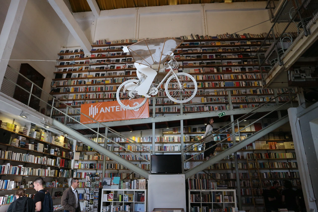 에그타르트 원조집이 있는 벨렘 지구로 가는 길에 LX Fctory를 찾았다. 공장지대를 문화공간으로 탈바꿈한 곳인데, 동네 골목길을 걷다 아치형 문으로 들어가 짧은 골목길을 따라가면 전혀 다른 새로운 공간이 나온다. 디자인 샵, 음식점 등 여러 상점들이 눈길을 사로 잡는다. 이곳에 온 건 온전히 레르 드바가(Ler Devagar) 때문이었다. '천천히 읽기'란 뜻의 이름을 가진 서점이다. 자전거를 타고 날으는 조형물도 그렇지만 그보단 그 뒤로 한눈에 들어오게 진열된 책이 눈에 띄었다. 서점 한 켠에는 라디오 방송을 하는 듯한 부스가 있었고, 홈페이지를 보니 가끔 전시도 하는 것 같다. 지금까지 본 서점 중 가장 독특한 구조의 서점이었다.