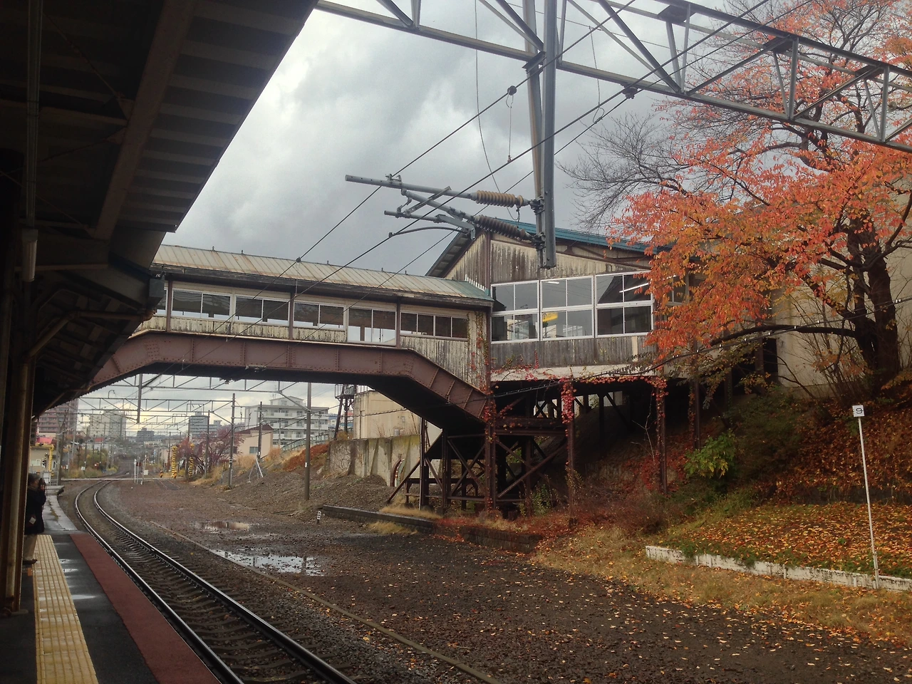미나미 오타루 역은 뭐라고 설명해야 할까, 흐린 날씨와 붉은 낙엽과의 낡은 승강장의 분위기가 어우러져서