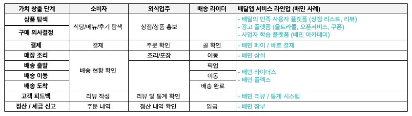 위 그림은 배달의 민족의 홈페이지에서 가져온 서비스 라인업을 정리한 것이다.