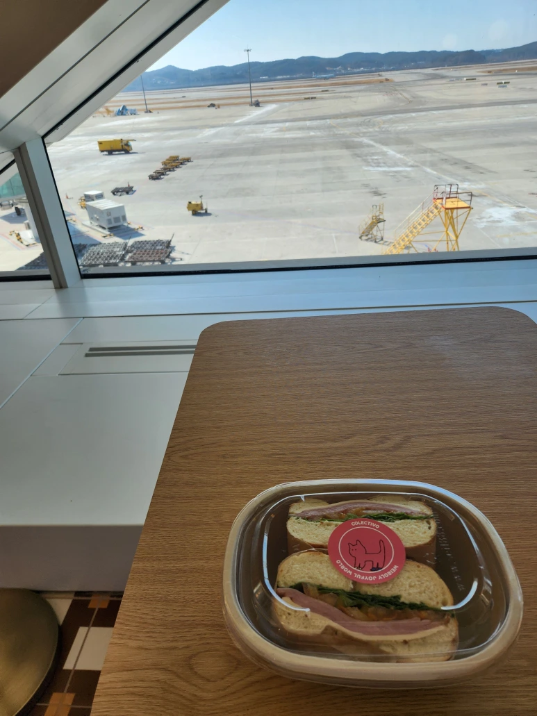 게이트에 1시간 전에 도착했을 때 가슴을 쓸어내렸다.