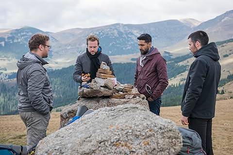 스웨덴 산으로의 하이킹에 나선 네 친구들 (왼쪽 사진 기준 : 허치, 루크, 필, 돔 순서)
