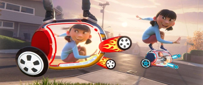 얼떨결에 고장이 나 버린 론 덕분에 친구란 상호작용, 교감 등이 오고 가는 ‘양방향’이라는 사실을 배워 가는 바니와 달리, 기계로서의 기능에만 충실한 비봇에 얽매여 있는 아이들은 피상적인 관계만을 반복하며 되레 점점 외로워진다. 바니의 반 친구 리치가 안전장치가 설치되지 않은 론의 시스템을 카피해 다른 친구들의 비봇까지 통제 불능 상태로 만들어 거대한 비봇 로봇을 만든 후, 또 다른 반 친구이자 SNS 인플루언서인 사바나를 괴롭히는 영상이 순식간에 전 세계로 퍼져 하나의 밈이 되는 장면에서는 씁쓸하다 못해 서늘한 기분마저 느껴진다. 이처럼 SNS나 비봇에 매몰된 채 제대로 된 관계조차 맺지 못하는 친구들을 지켜보던 바니는 결국 자신만의 론을 모두의 론으로 보내주게 되고, 영화는 해피 엔딩으로 막을 내린다.