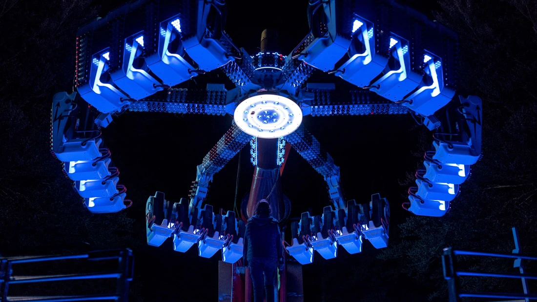 밤늦은 시각, 아무도 없는 놀이공원에서 점보와 시간을 보내는 잔