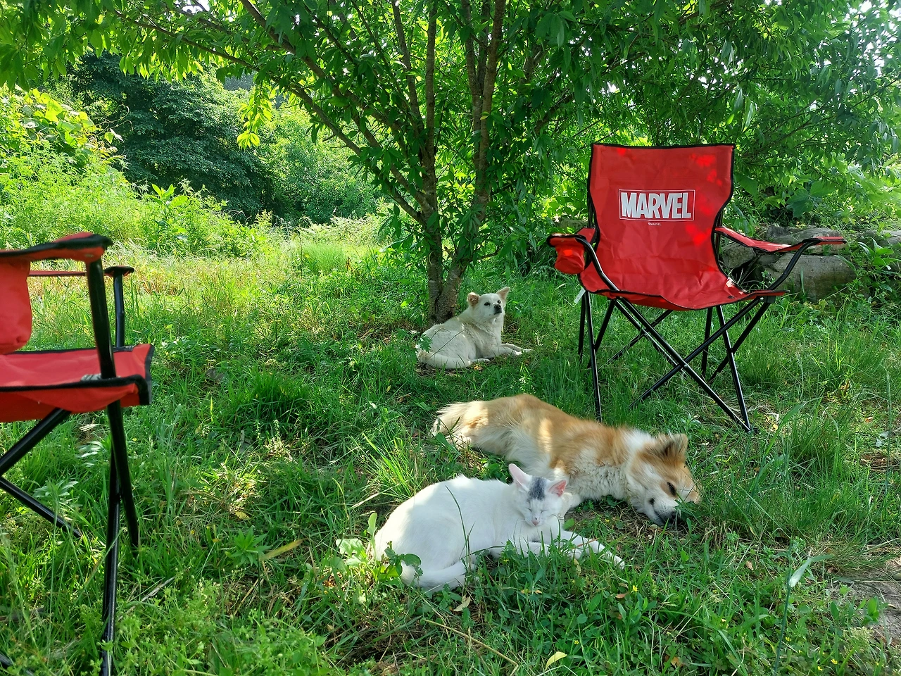 나무밑에 그늘에 조그만 의자에 앉아서