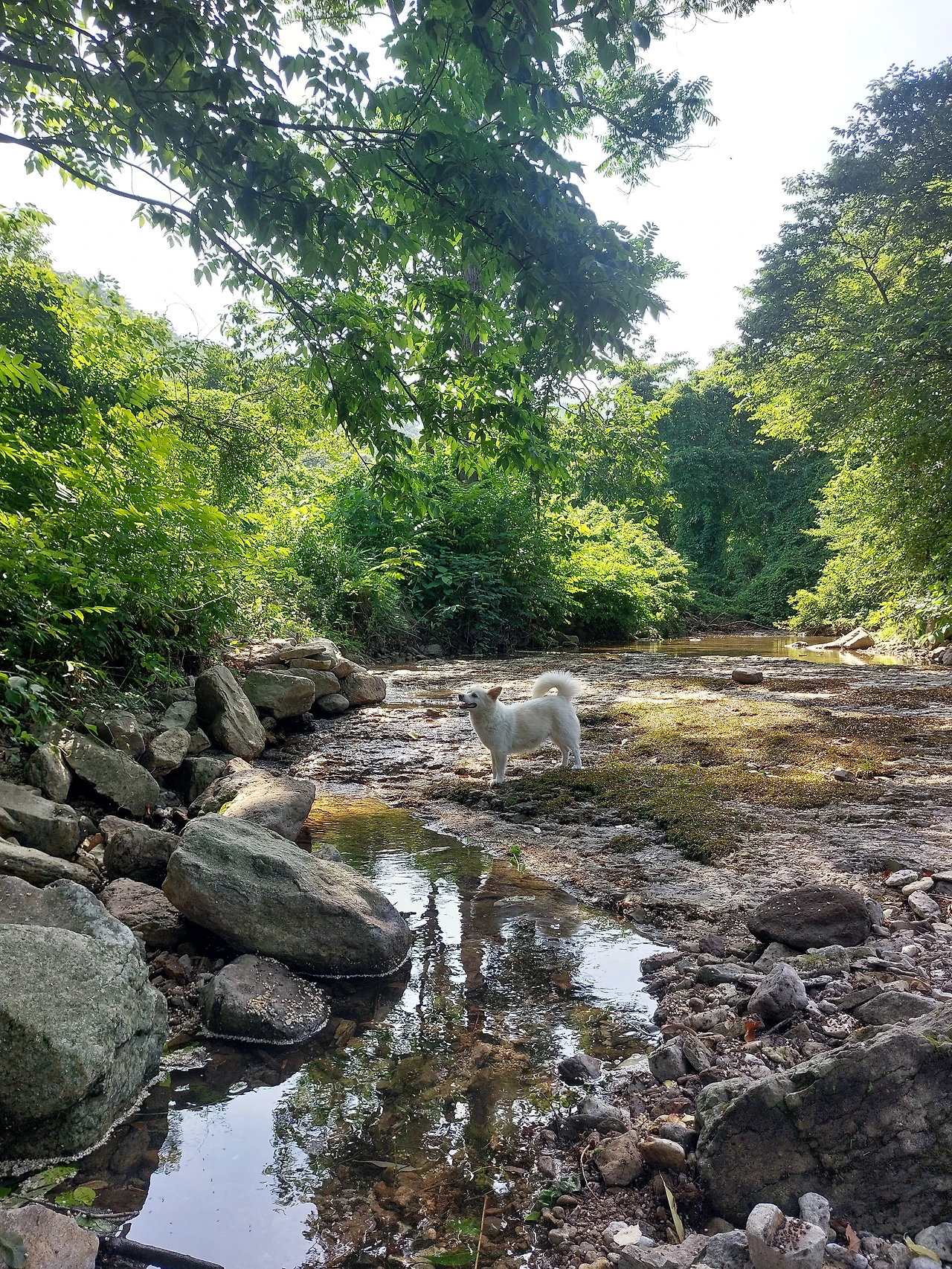 물을 이용하여 그 옛날 방식으로 냇물이