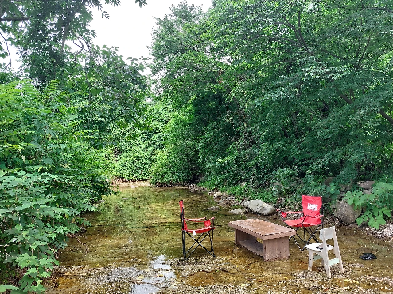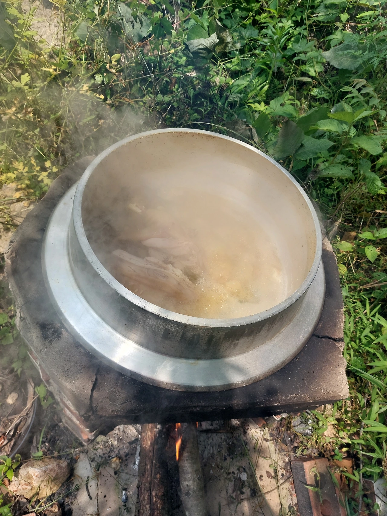 장작불에 익어가는 백숙의 구수한 냄새는,