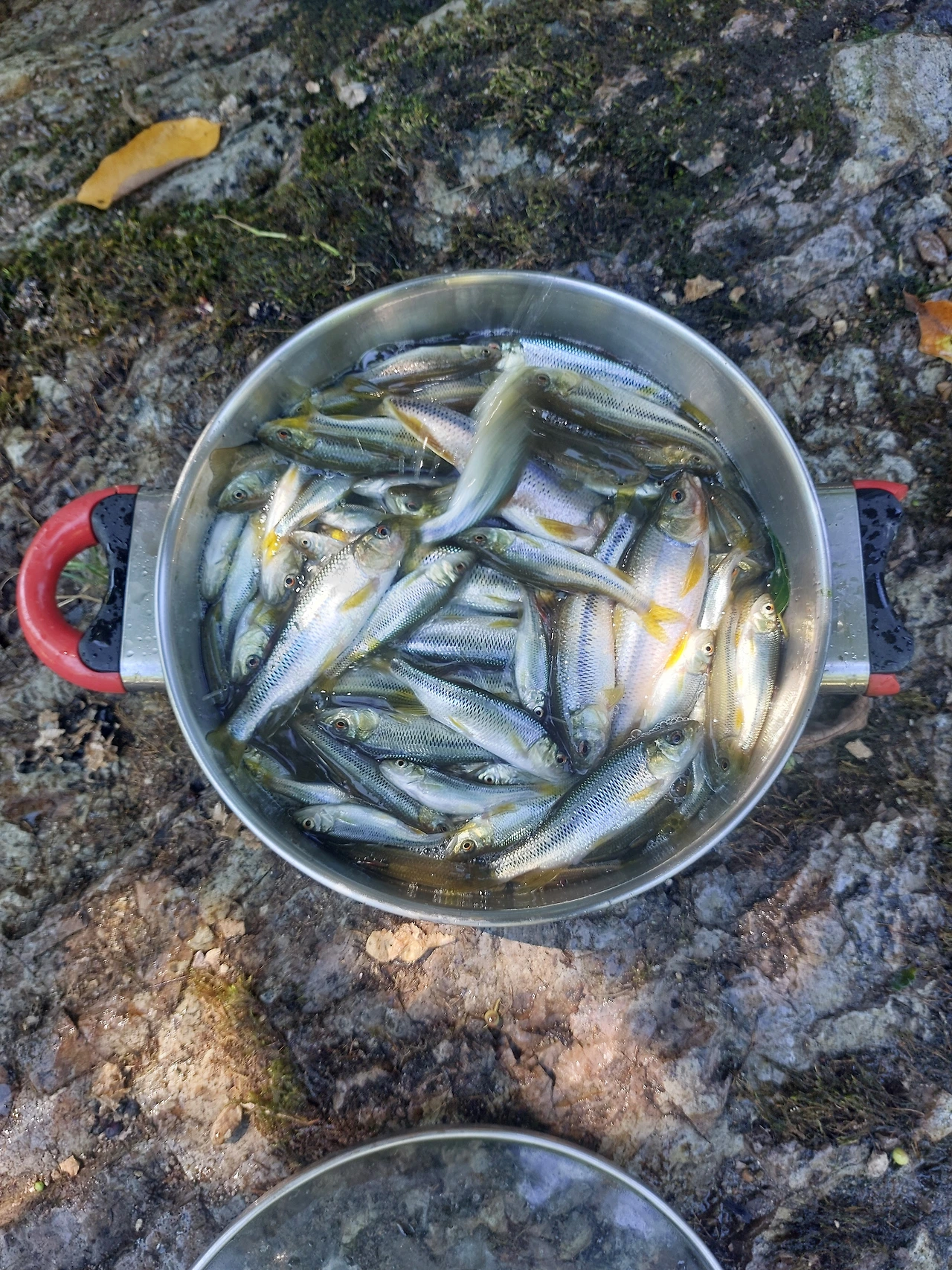 고 거의 붕어만 한 버들치들이 있는데도