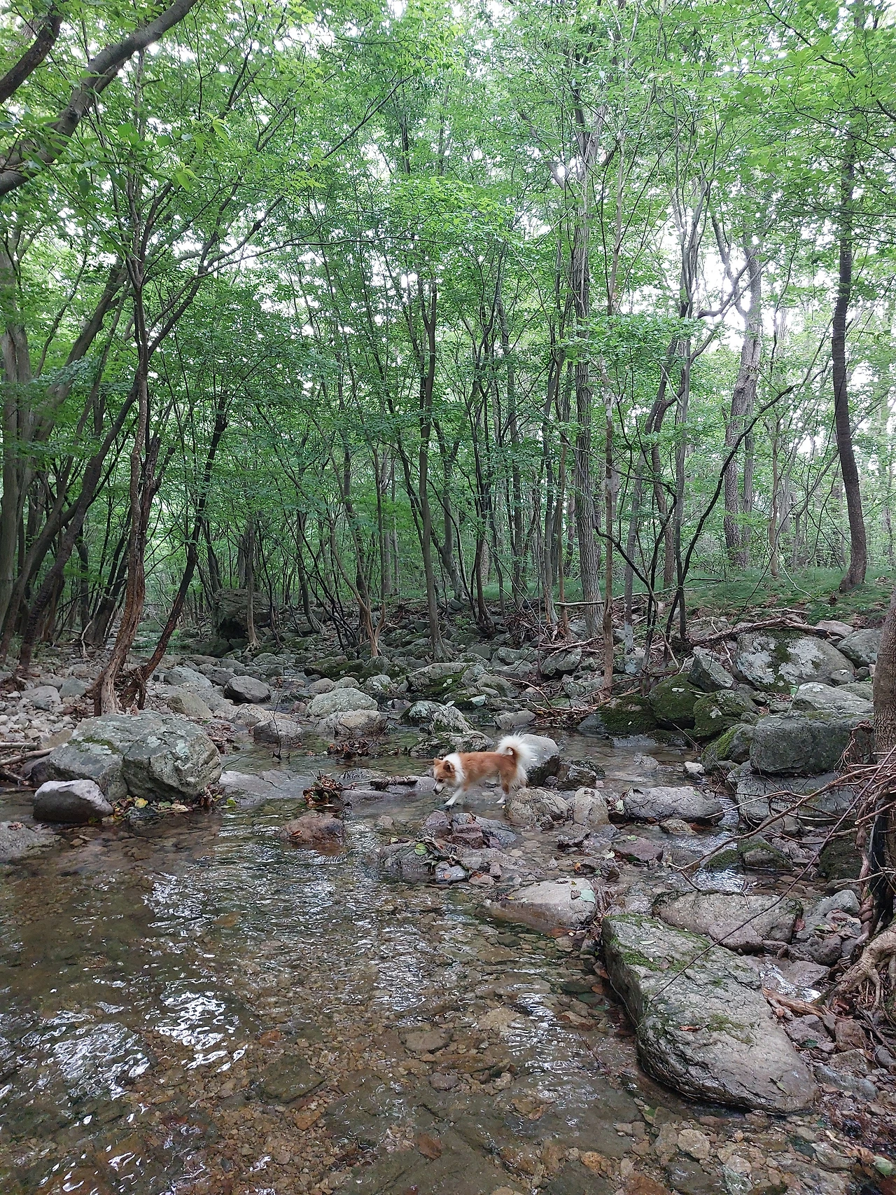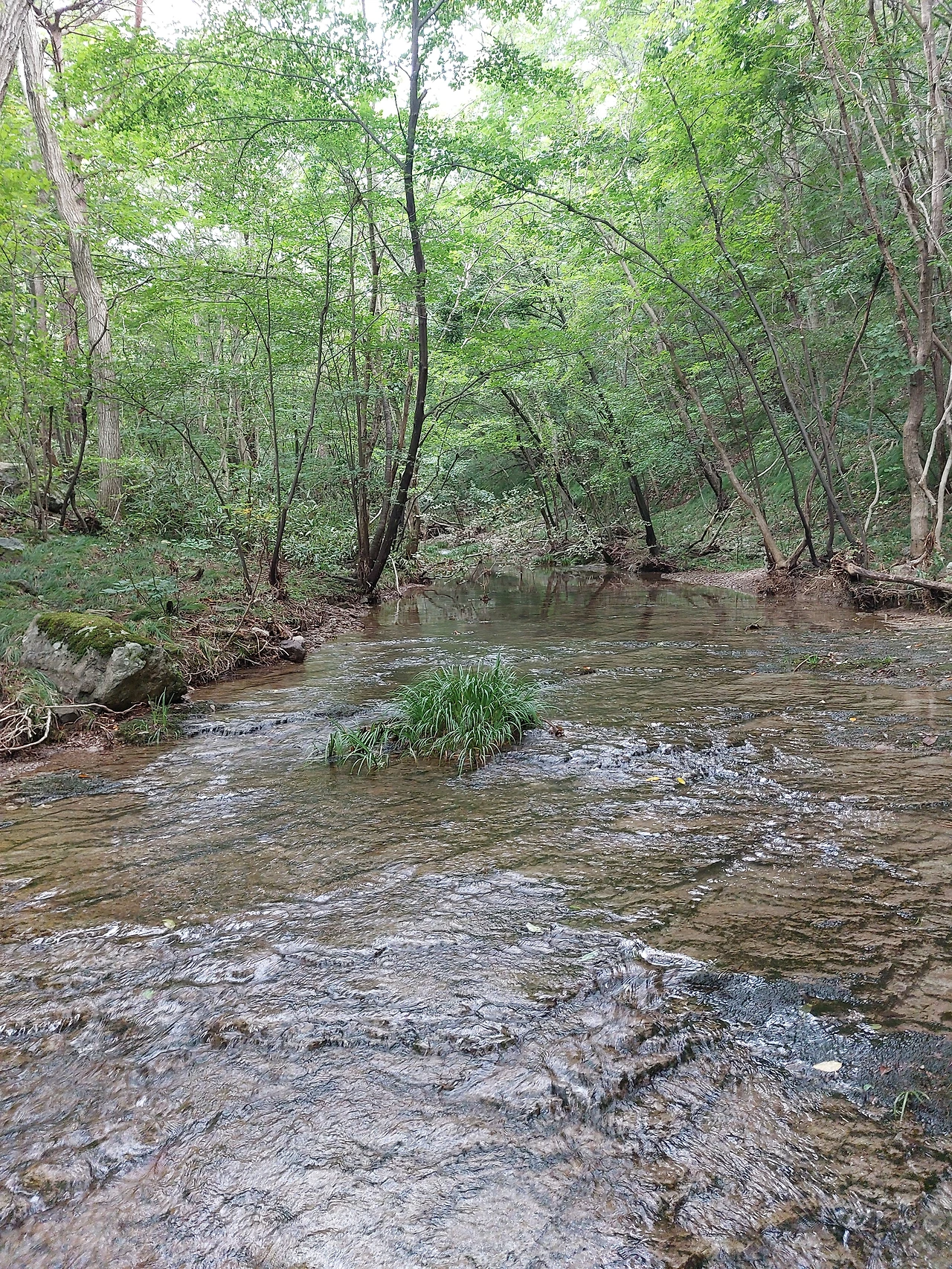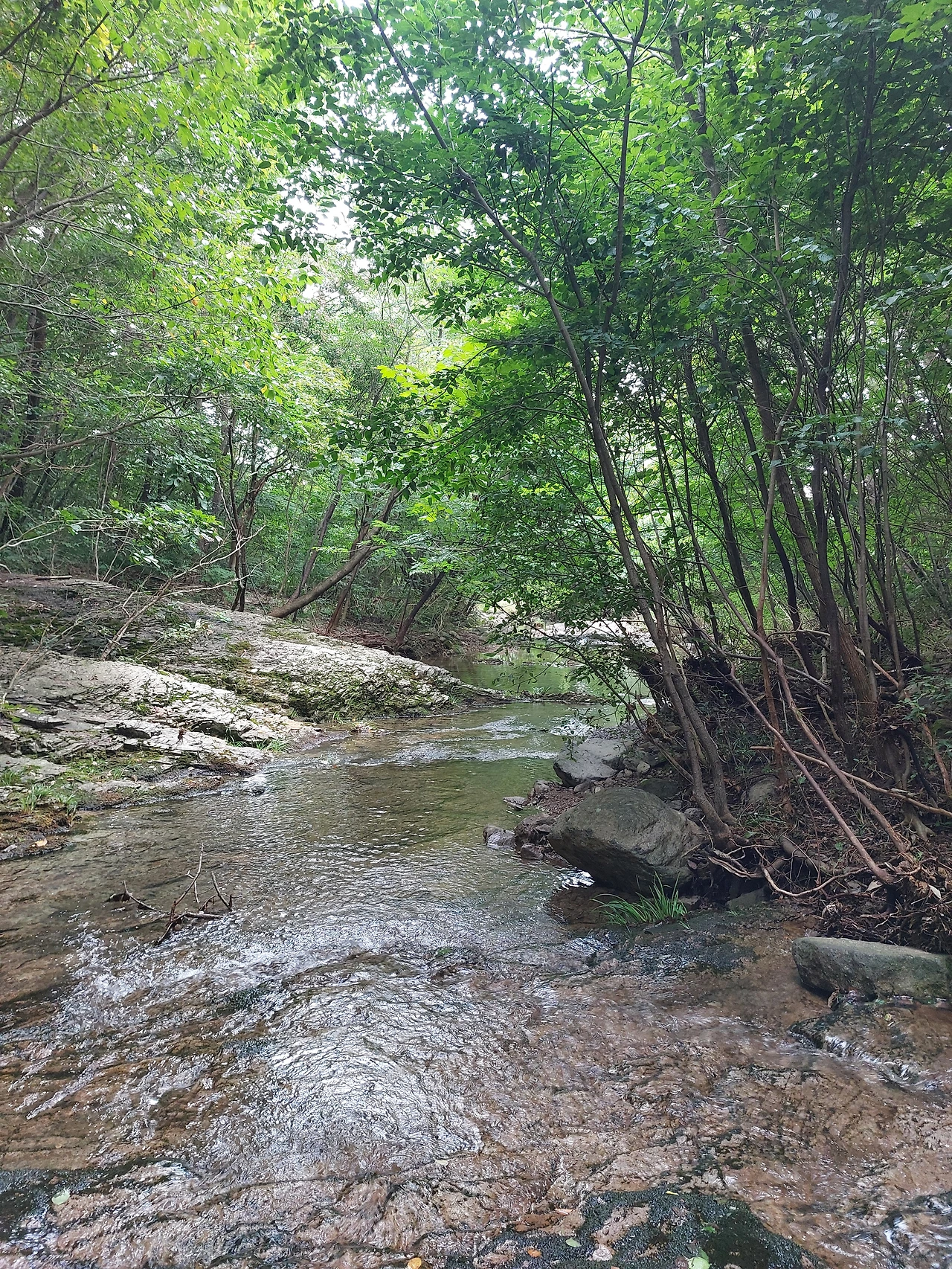 시냇가를 따라서 걷는 잠깐 동안인데도