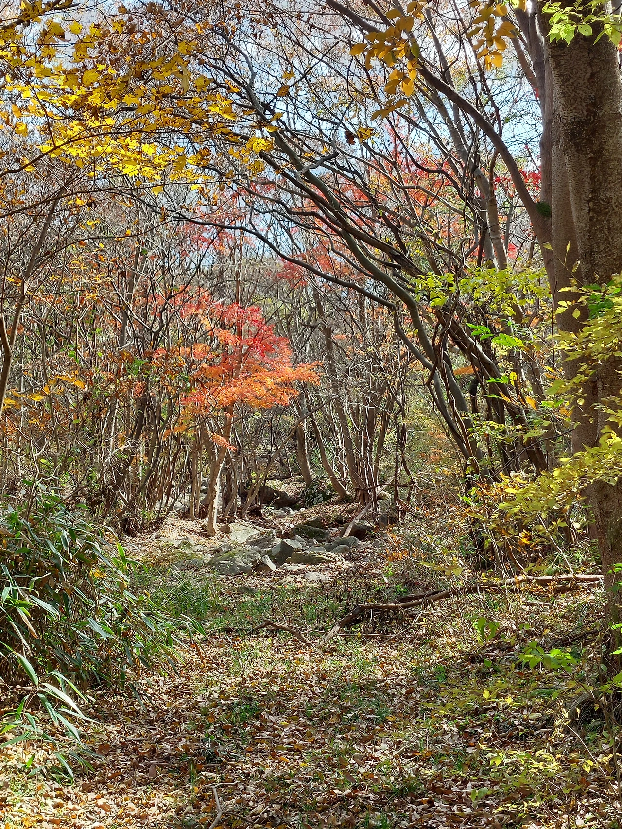 묵묵히 산길을 걷다가 마른 이끼가 있는
