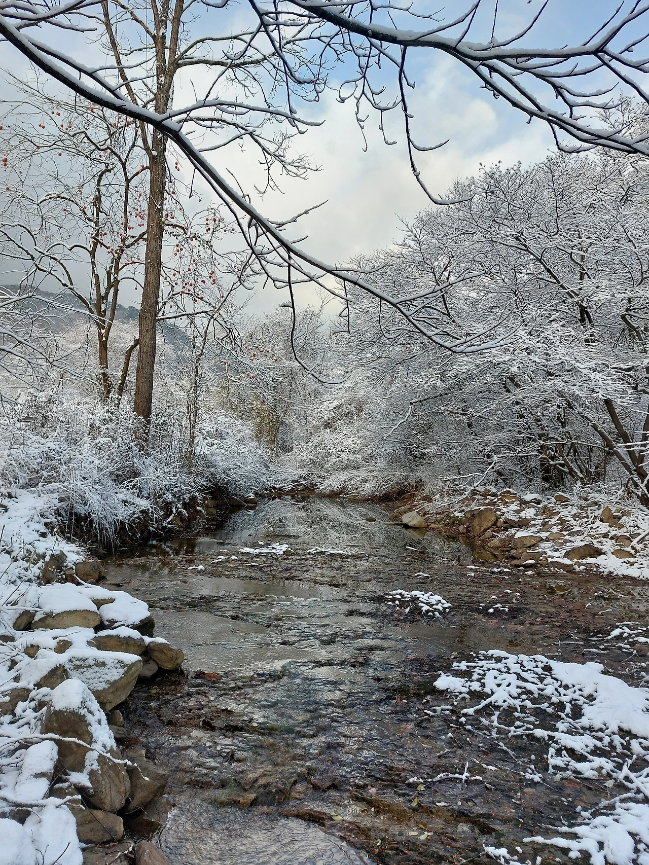 본격적인 추위가 오는지 산골은 눈비가