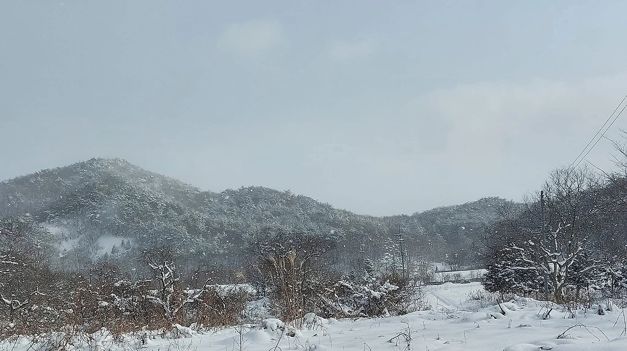 산중에 겨울의 아침에 눈을 뜨면 볼일을