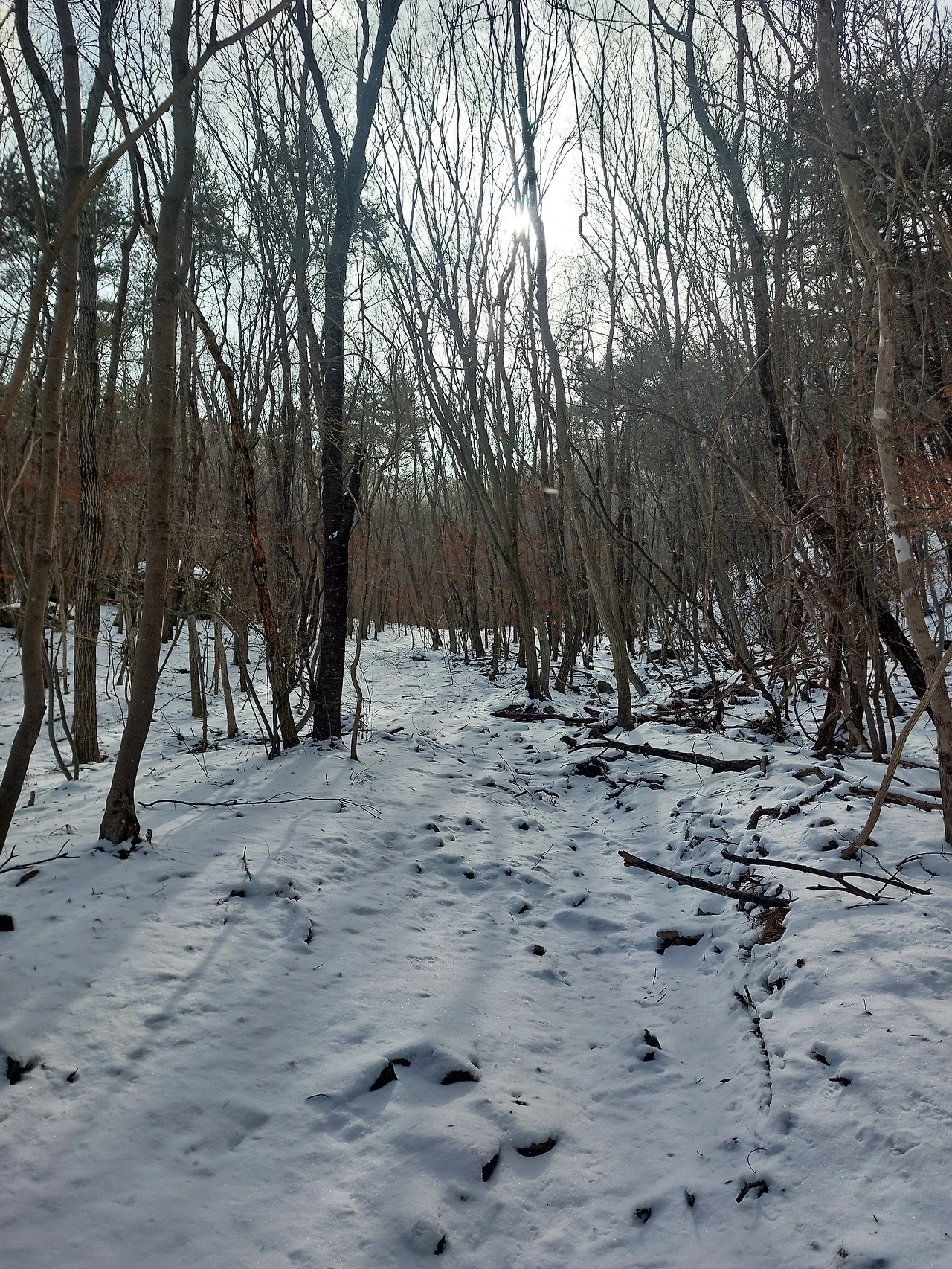 미끄러운 바위의 얼음 부분에 발을 헛디