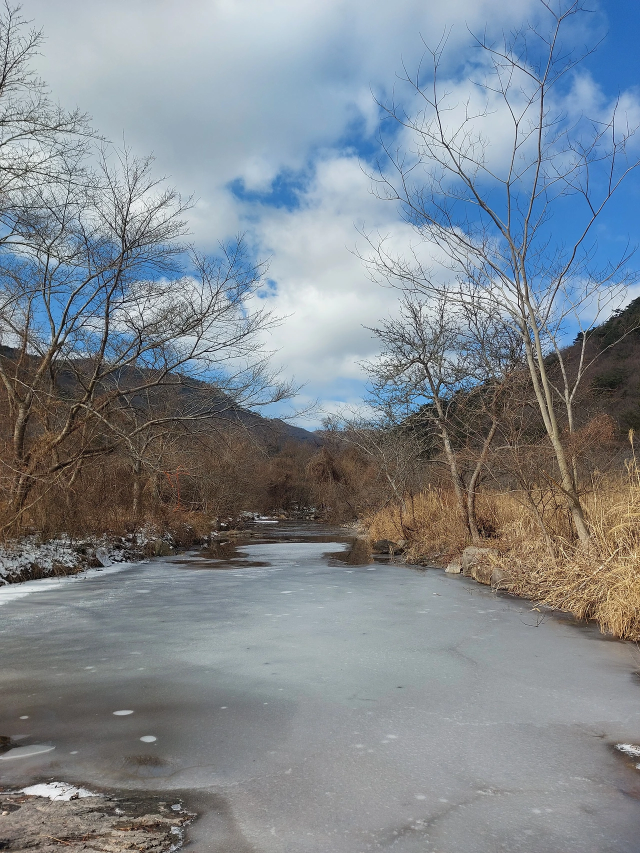 아직 군데군데 잔설이 남아 있는 계곡의