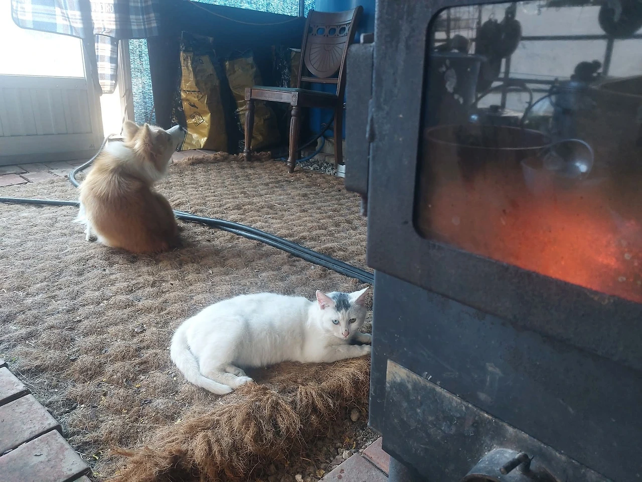 를 해 놓은 홍시를 먹거나 낮에 화목난로