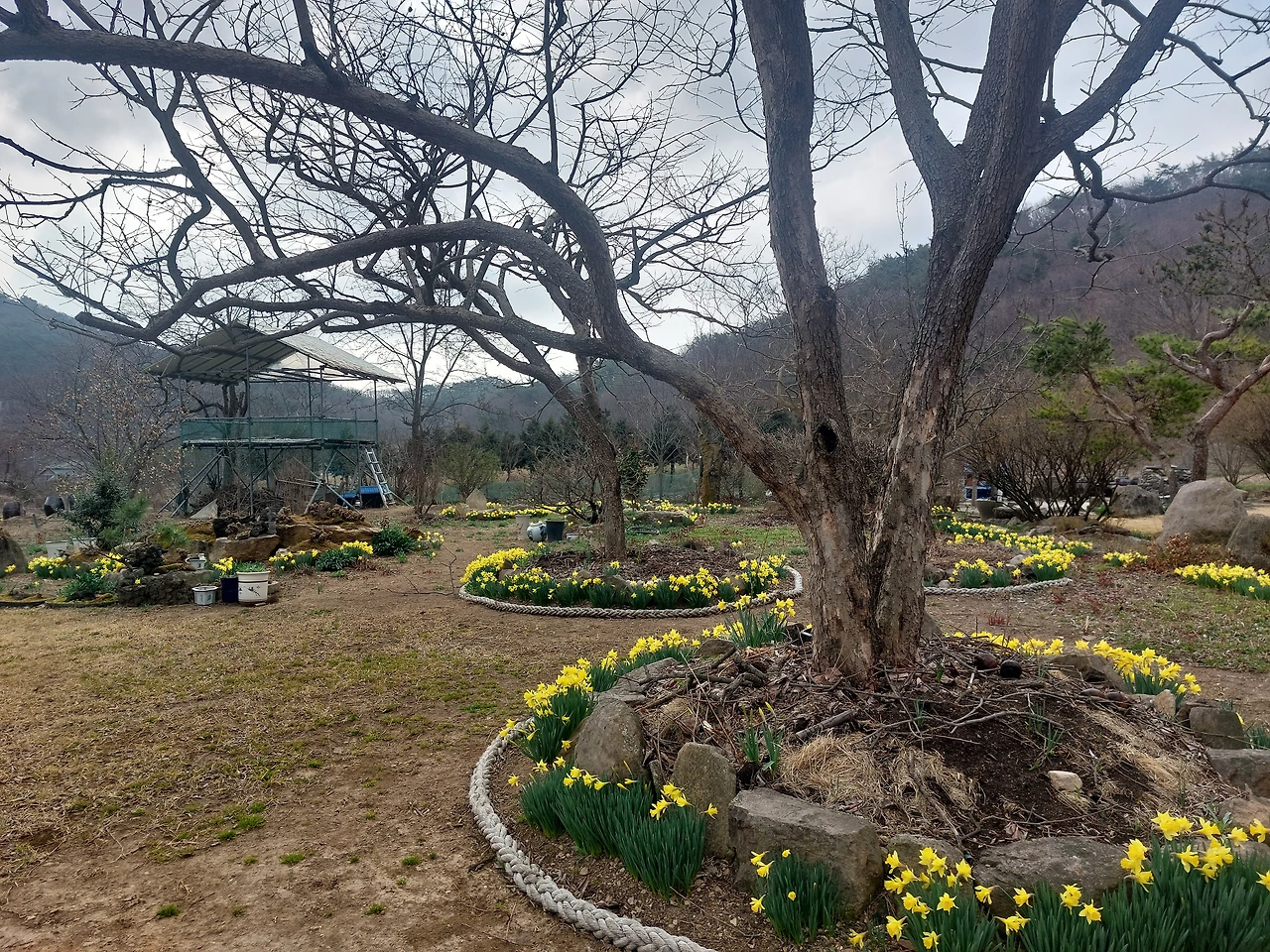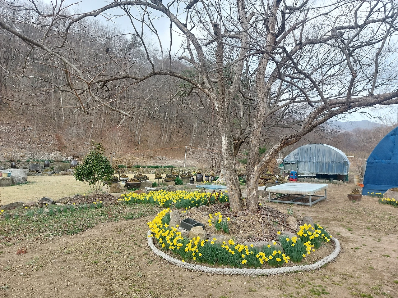 리가 산새 소리와 섞여서 들리는 봄날의