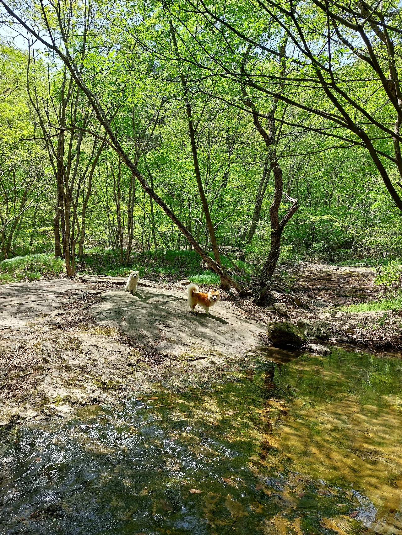 늘이진 넓적한 바위에 언제나 물이 흐르