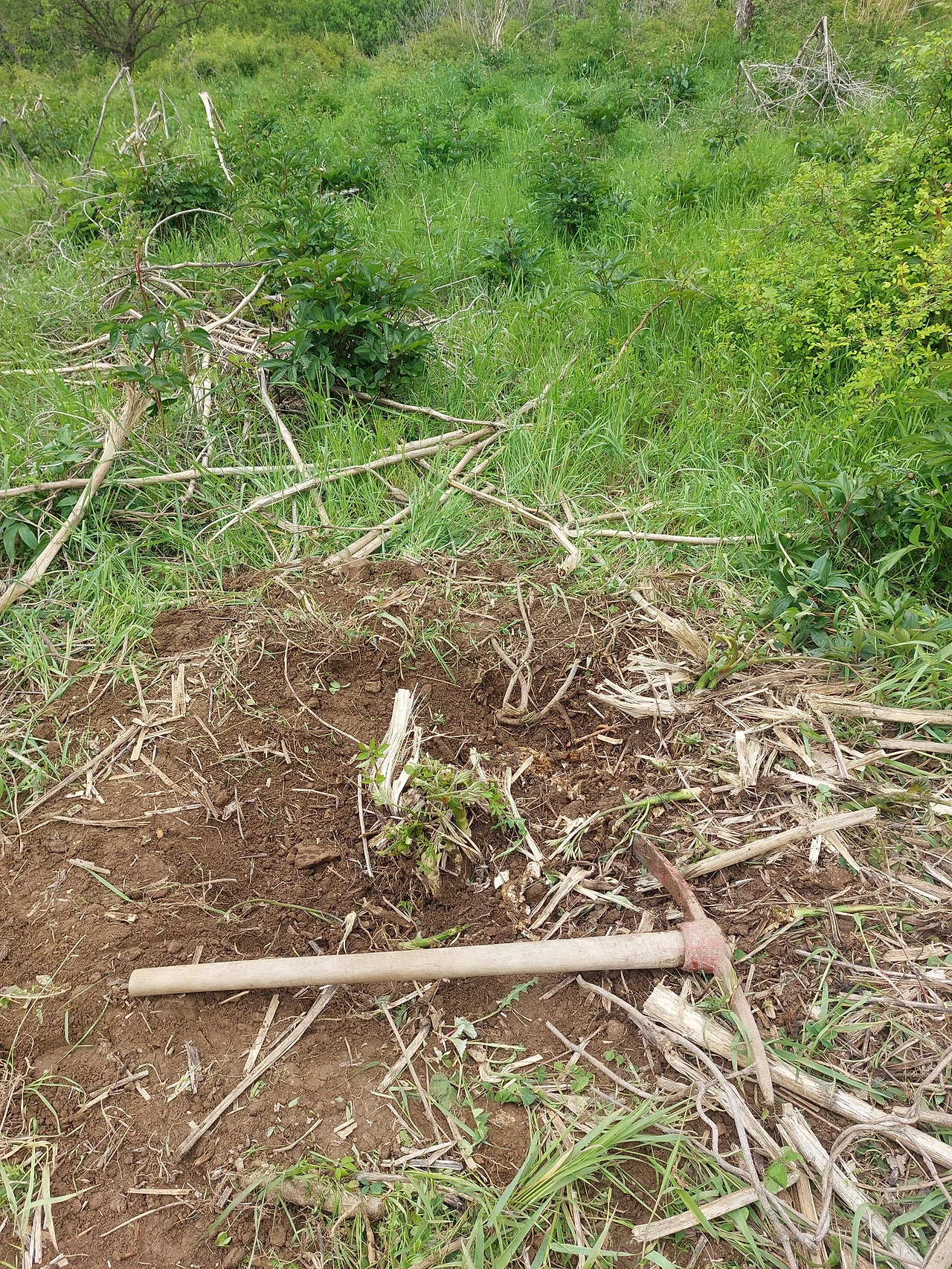 지킨다고 곡괭이와 작은 모종삽을 준비해