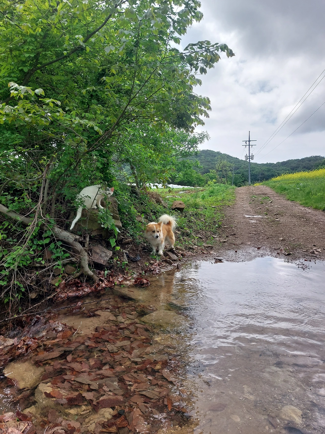 그래도 밤새 폭우로 냇가에 쌓인것