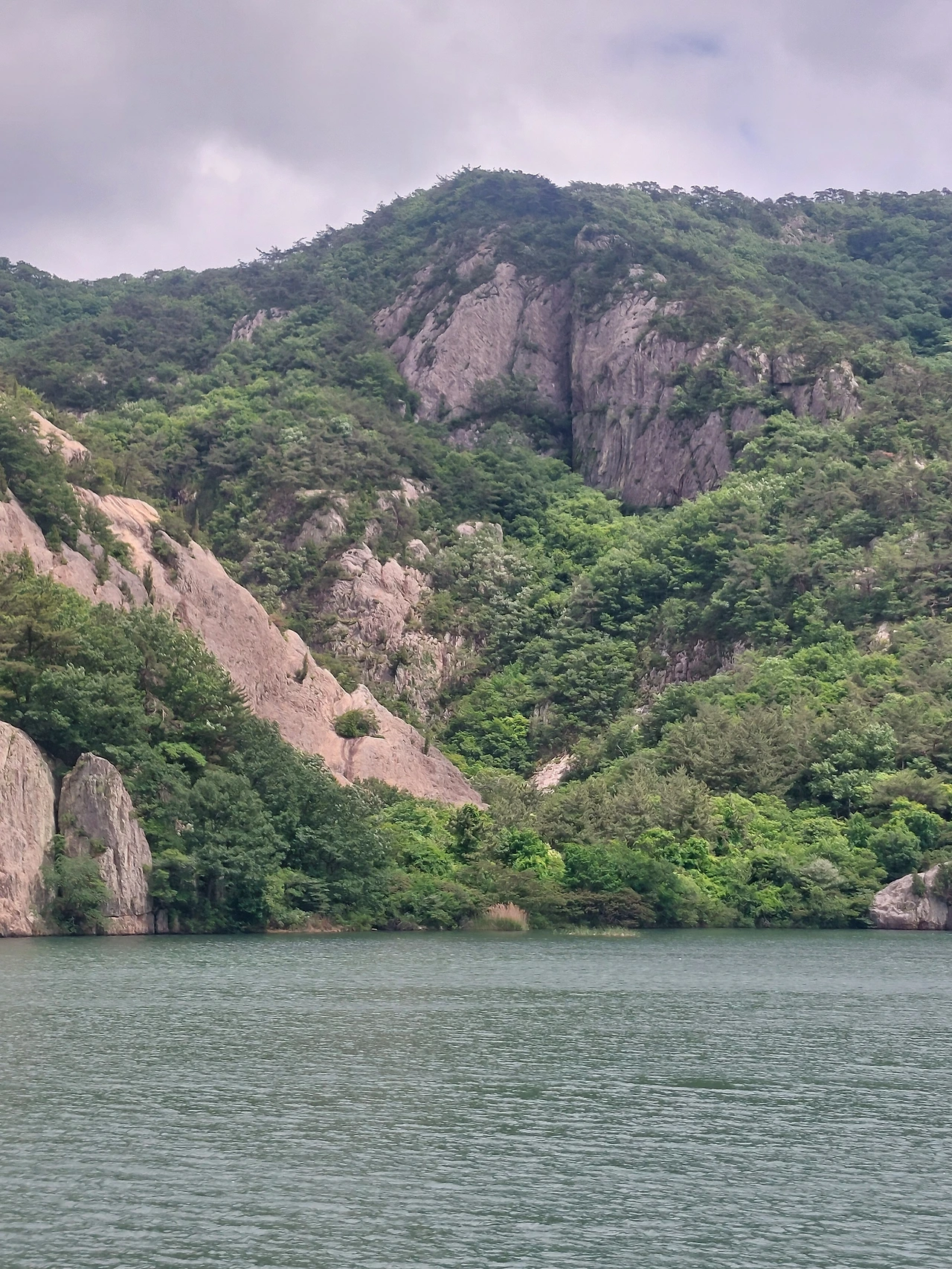 내가 쓴 설거지 거리를 들고서 냇가옆에