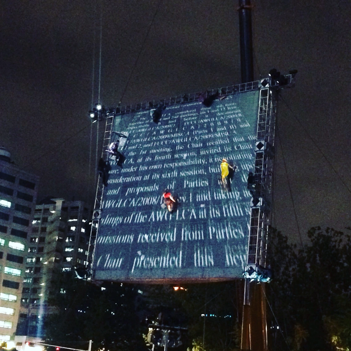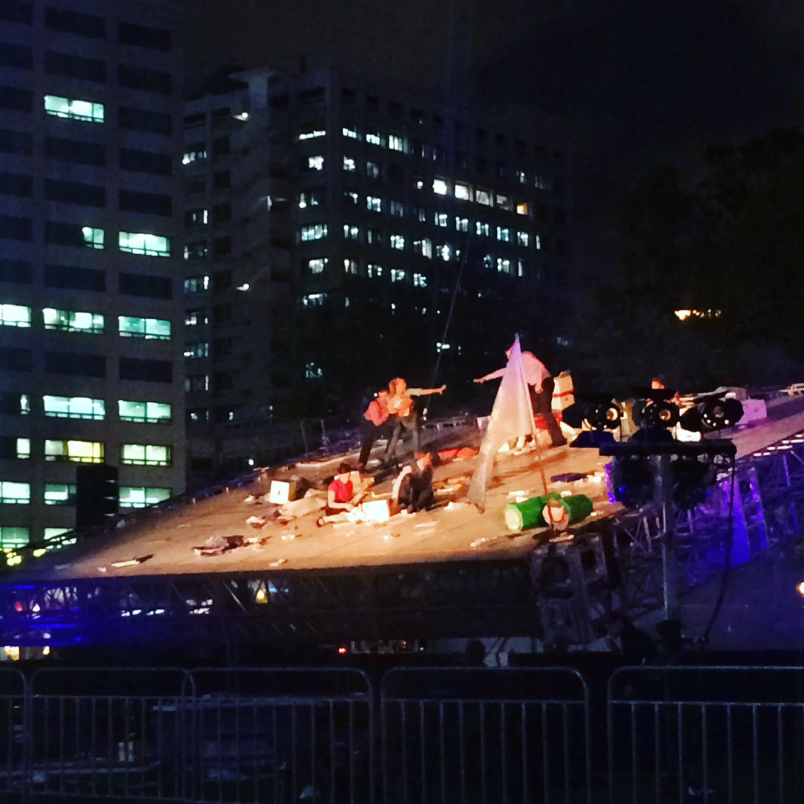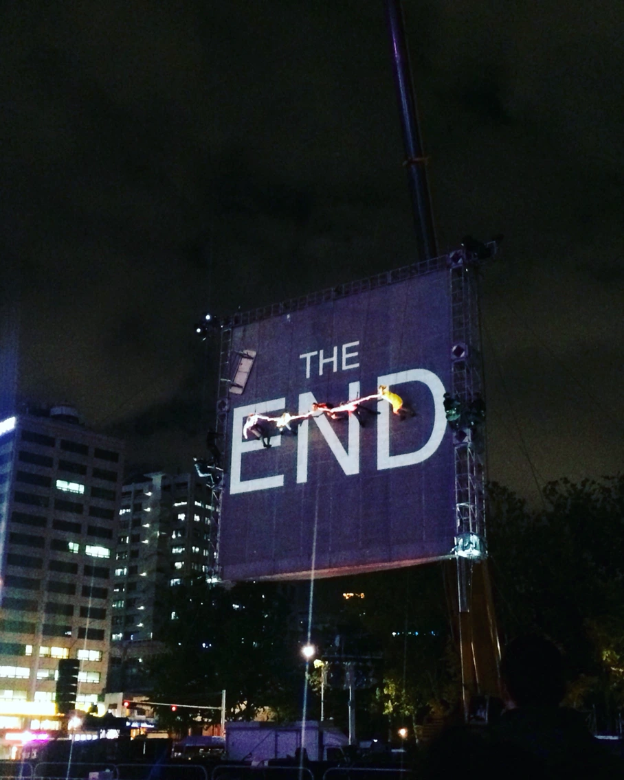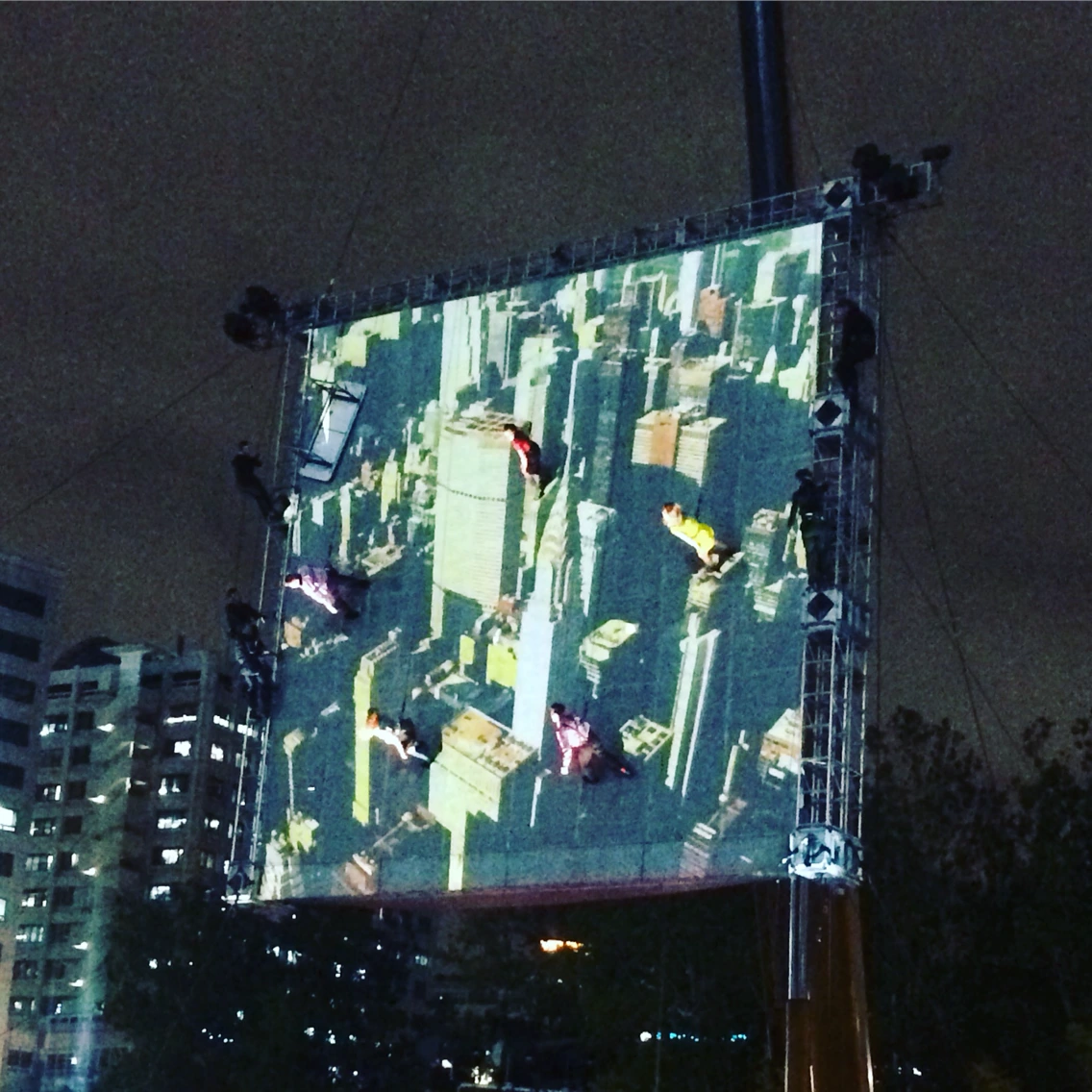 며칠 전부터 서울광장 한편에 서있던 50미터 높이에 달하는 크레인은 이 공연을 위한 것이었다. 20미터 높이의 거대한 스크린이 수직으로 세워지고, 그 위에선 아슬아슬한 공중 퍼포먼스가 펼쳐졌다.