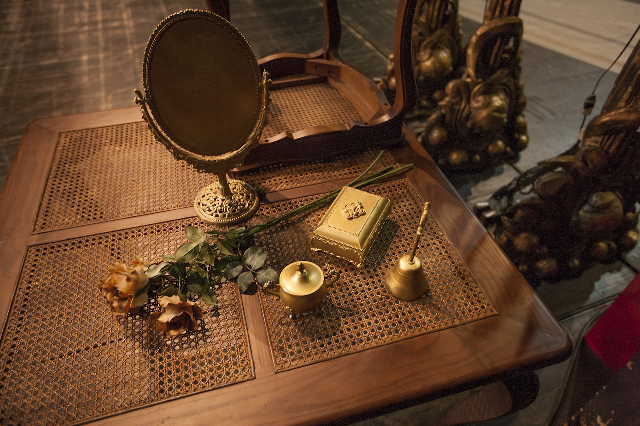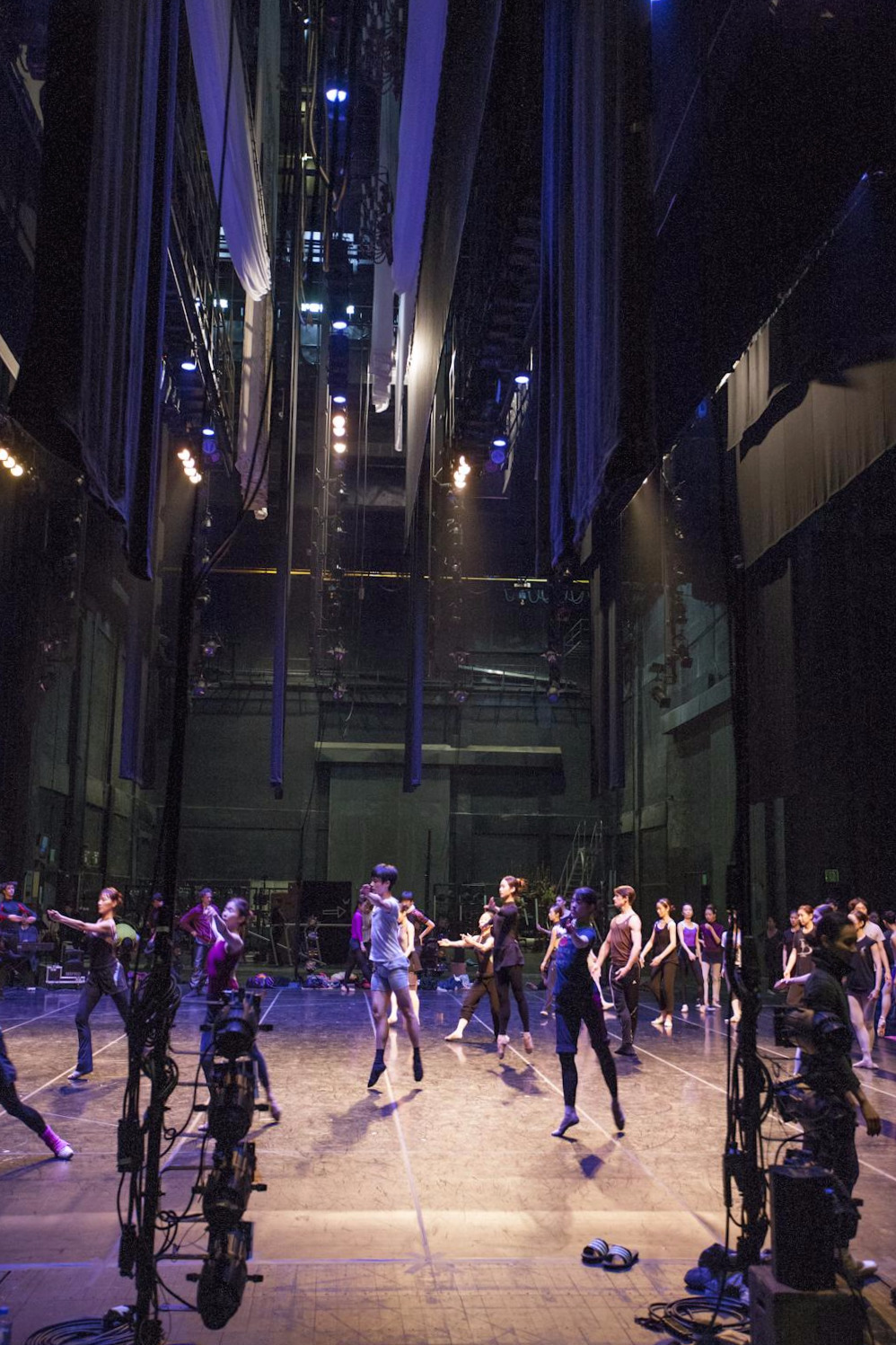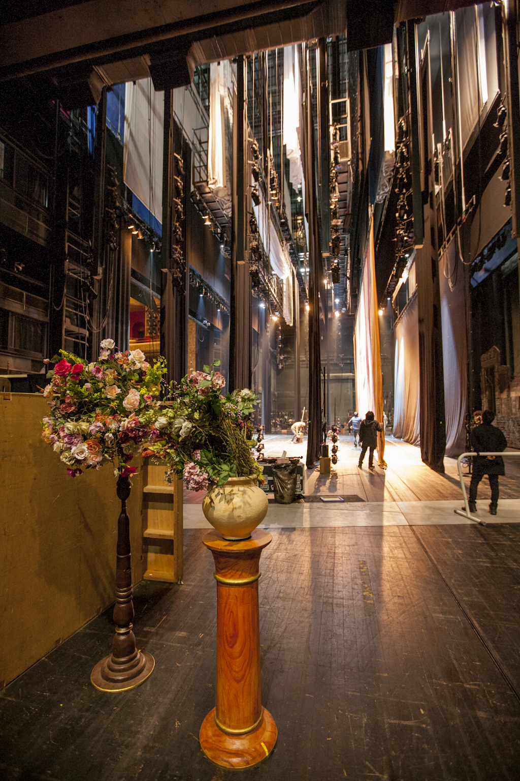 같은 시각, 무대에서는 <라 바야데르>의 거대한 세트 뒤로 공연을 위한 여러 종류의 막이 오르락내리락하며 무대 세팅이 한창이다. 댄스 플로어의 마킹 테이프를 새로 붙이고, 무용수들이 남긴 바닥의 자국을 닦아내는 한편, 공연에 사용되는 소품들이 각자의 자리에서 무대에 나갈 때를 기다리고 있었다.