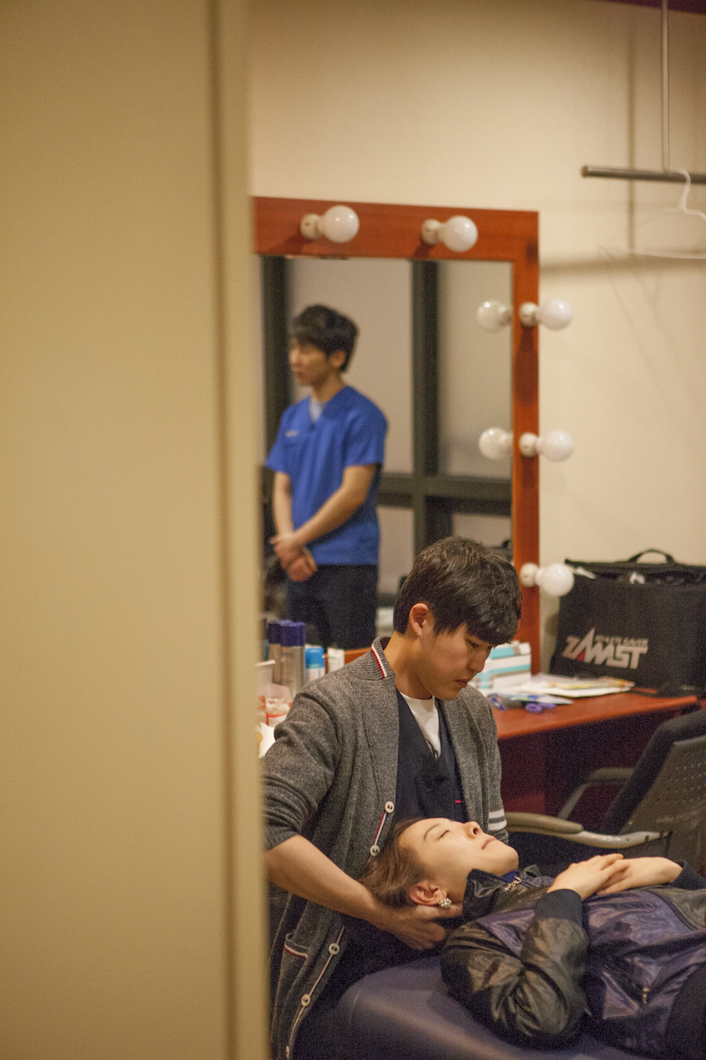 무대 위에서의 연습을 마친 무용수들이 각자의 분장실로 뿔뿔이 흩어졌다. 이들의 뒤를 쫓아 따라간 곳은 특이하게도 평범한 분장실의 모습이 아니었다. 입구에는 시간대별로 이름을 빼곡히 적어둔 종이가 붙어 있었다. 침대가 마련된 이곳은 마사지 룸. 리허설부터 공연시간 내내 물리치료사들이 대기하고 있어 무용수들이 언제든지 적절한 치료와 마사지를 받을 수 있는 곳이다. 발레단에 상주하고 있는 건강관리사에 따르면 “무대 위에서 안전장치 하나 없이 몸을 쓰는 무용수들은 스포츠 선수들만큼 부상률이 높아 마사지 룸을 자주 찾는다”고 전했다.