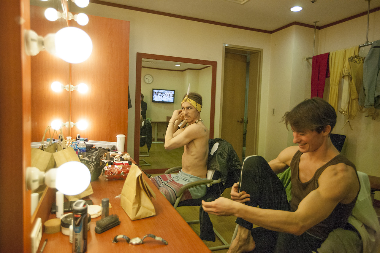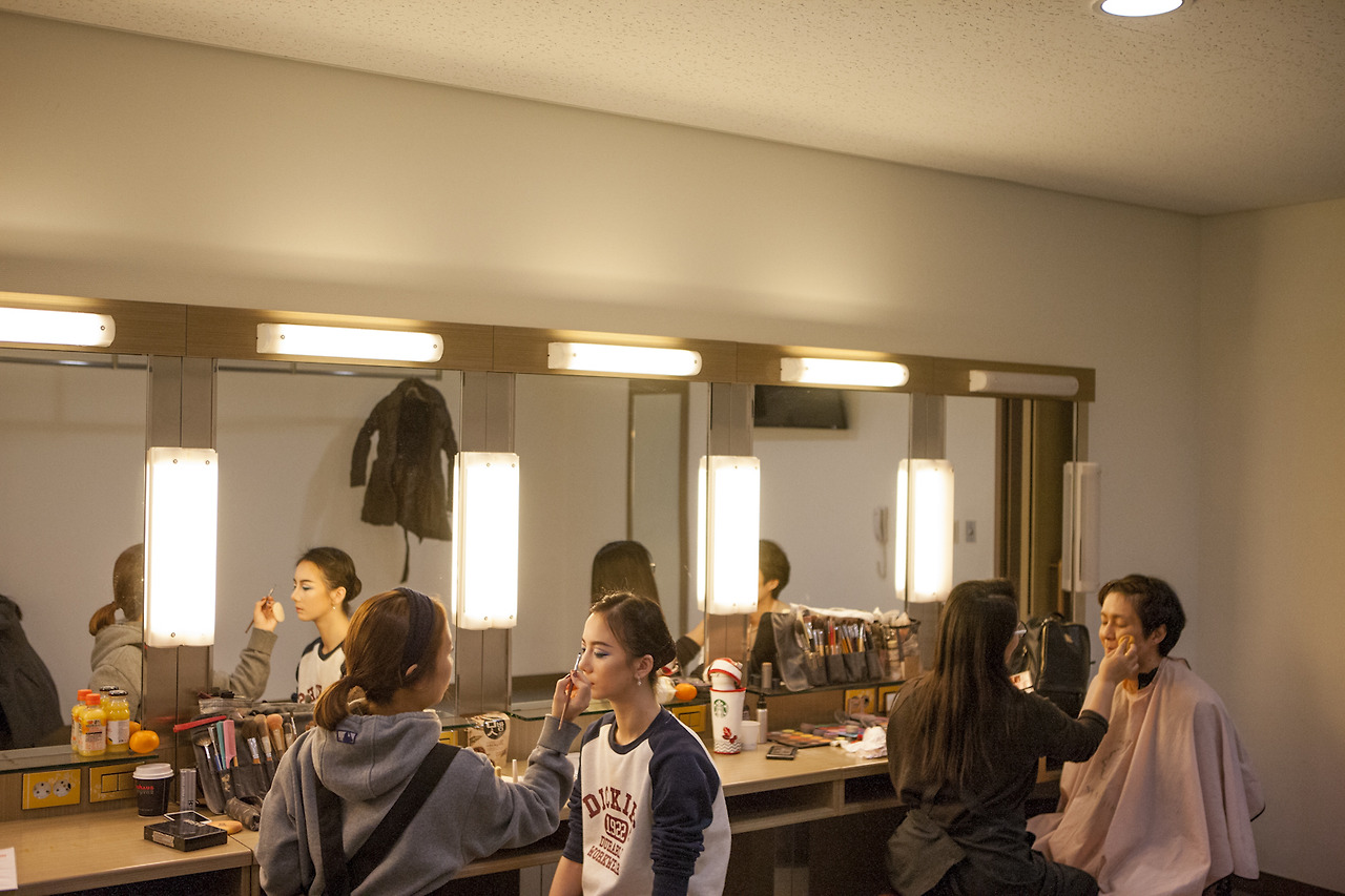 줄줄이 이어지는 스무 개 가량의 분장실에는 모두들 공연에 앞서 메이크업과 헤어를 만지느라 바빴다. “잠깐, 그거 내 것 아니야?” 의상이 공간의 반을 차지해버린 군무진의 분장실에서는 비슷비슷한 서로 의상을 바꿔 들고 가는 해프닝이 종종 생기기도 한다고.