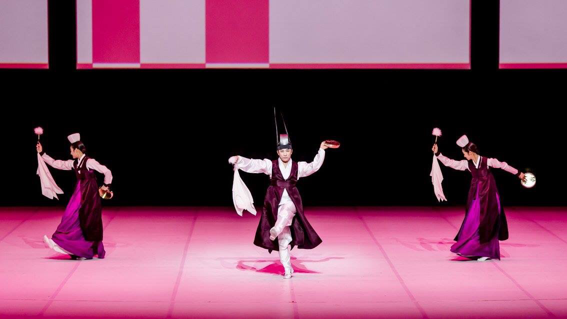 흰 저고리와 장삼을 걸치고, 붉은 가사를 대신해 자줏빛 치마를 두른 일곱 무용수가 법고 앞에 선다. 대표적인 전통 의식무 중 하나인 ‘승무’다. 군무로 편성된 이번 승무에선 고깔 아래 살짝살짝 비치는 고고하고 무욕적인 무용수의 표정은 없다. 펄럭이는 장삼은 흰 물결같이 흐르고 활달한 기상이 어깨를 따라 들썩인다. 북과장이 시작되면서 심장 가까이 울리는 북소리와 일제히 흩어지는 북채의 움직임을 따라 무아의 경지에 이르게 되고, 이내 정점에 다다르고 나면 잠깐의 여백이 마침표를 찍는다.