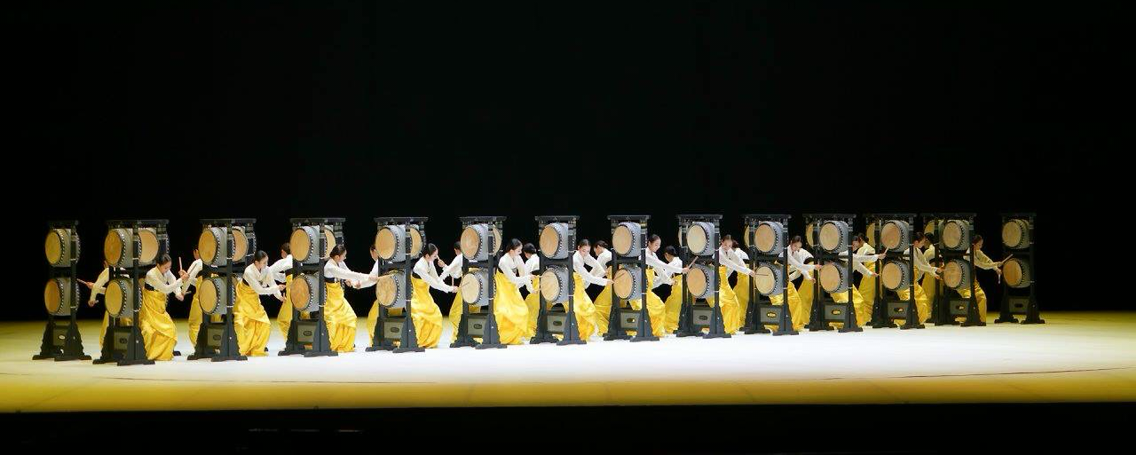 장구에서 소고를 거친 흥은 북에서 한껏 고조된다. 24명의 무용수가 일제히 선보이는 오고무 차례다. 치자를 물들인 듯 샛노란 빛깔의 의상과 모노톤으로 채색한 북이 대조를 이루며 무용수들의 움직임을 더욱 선명하게 만든다. 2열 종대로 꾸려진 대열은 원형무대가 회전하면서 이전에 볼 수 없었던 각도를 펼쳐 보인다. 위아래 좌우를 번갈아 두드리며 하나의 소리로 모아진 북의 울림은 새 생명이 움트는 역동적인 기운을 닮았다. 무용수들은 허리를 제치거나 좌우로 돌려가며 북을 두드리고, 위로 뛰어올라 내리치거나 구음과 함께 북채를 마주치기도 한다. 일체된 움직임과 높낮이·강약의 변화를 거듭하는 가락 속에 완연하게 무르익은 가을의 풍경이 엿보인다.