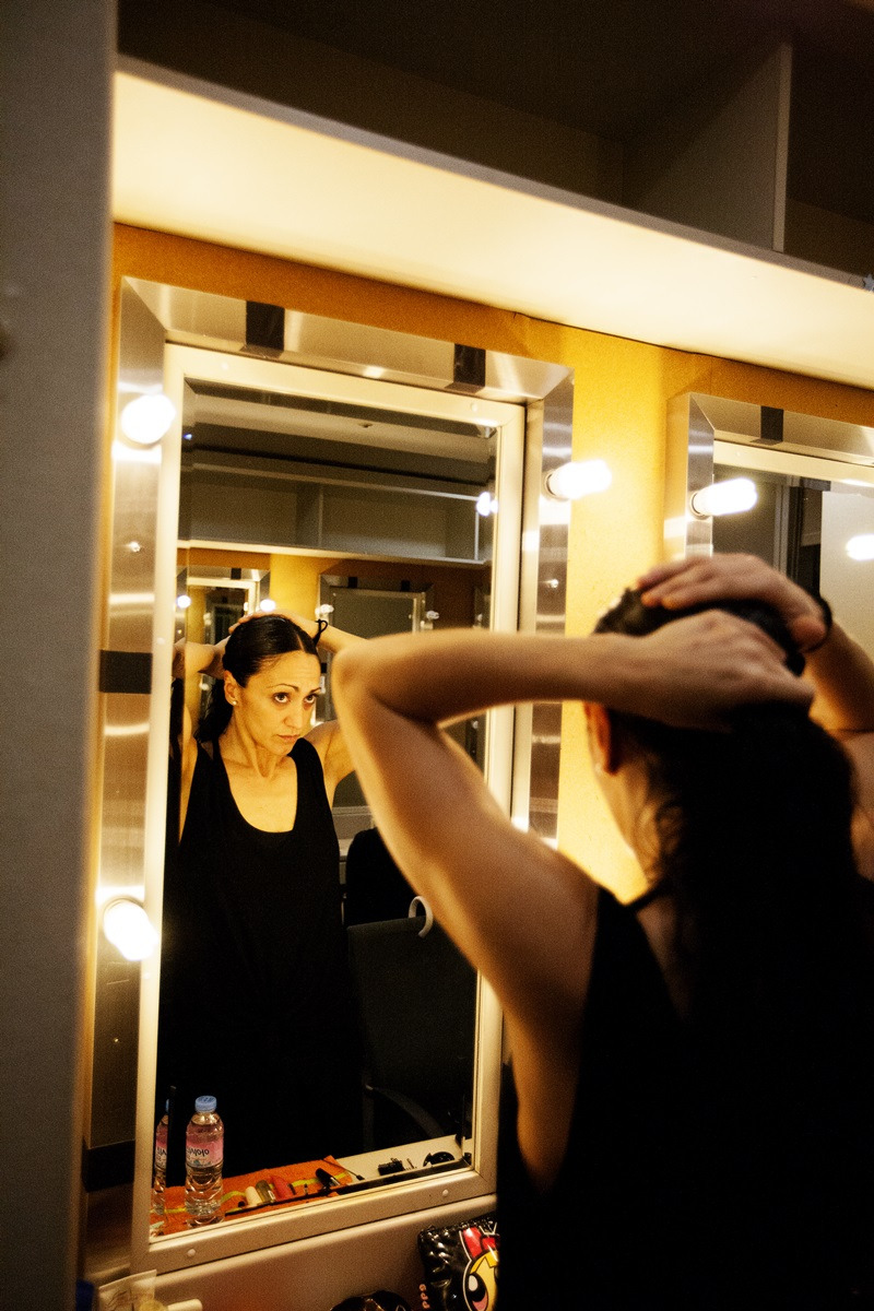 무용수들이 각자 분장하느라 바쁜 와중에 사라 바라스는 분장실에서 연습을 이어갔다. 단원들을 챙기느라 연습을 하지 못했던 그녀는 촉박한 시간 동안 한정된 공간에서 동작과 음악을 점검하면서도 표정은 연신 여유로웠고 웃음이 가득했다.