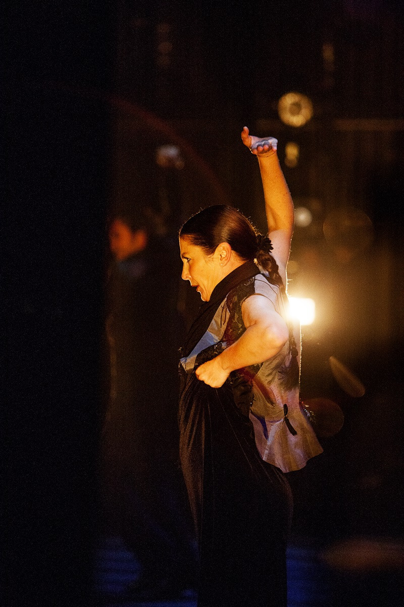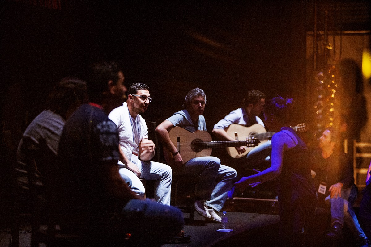 붉고 화려한 조명을 상상하고 들어선 이날의 백스테이지는 오히려 스페인 시장 한복판을 보는 것 같았다. 에스파냐어를 사용하는 무용수들과 연주자·무대 스태프들 간에 나누는 대화로 연신 왁자지껄한 분위기였다. 활기 넘치는 분위기와 격양된 목소리에 순간 이곳이 스페인이 아닐까 하는 생각마저 들었을 정도로 열정적인 기운이 무대 전체에 감돌고 있었다. 어둡고 캄캄한 무대에 검은 연습복과 검은 구두를 신어 무용수들의 모습이 잘 보이지 않는 상황에서도 그 눈빛만은 빛났다. 그들은 웅장한 음악이나 화려한 조명 없이도 표정과 눈빛만으로 모든 것을 말해주고 있었다.
