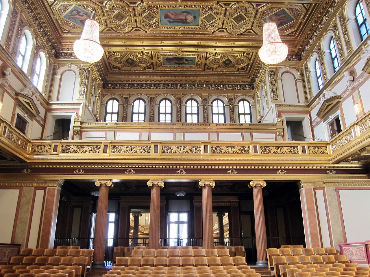 앞서 언급했듯이 이곳이 유명한 이유는 크게 두 가지로 꼽을 수 있는데, 첫째는 신년음악회, 둘째는 훌륭한 음향시설이다. 매년 열리는 빈 필 신년음악회의 티켓 가격은 최소 90유로부터 최대 990유로까지 달하는데, 돈만 있다고 가능한 것이 아니라 추첨을 통해 당첨되어야 구입할 수 있다. 가장 좋은 좌석들은 초대를 위해 판매하지 않으며, 가이드의 설명에 따르면 아마 90유로짜리 좌석을 구입한다면 2층 구석 저어어어어어어기쯤에 앉을 수 있을 거라 했다. 투어에 참여한 모두가 눈을 반짝이며 듣다가 너털웃음을 터뜨렸다.