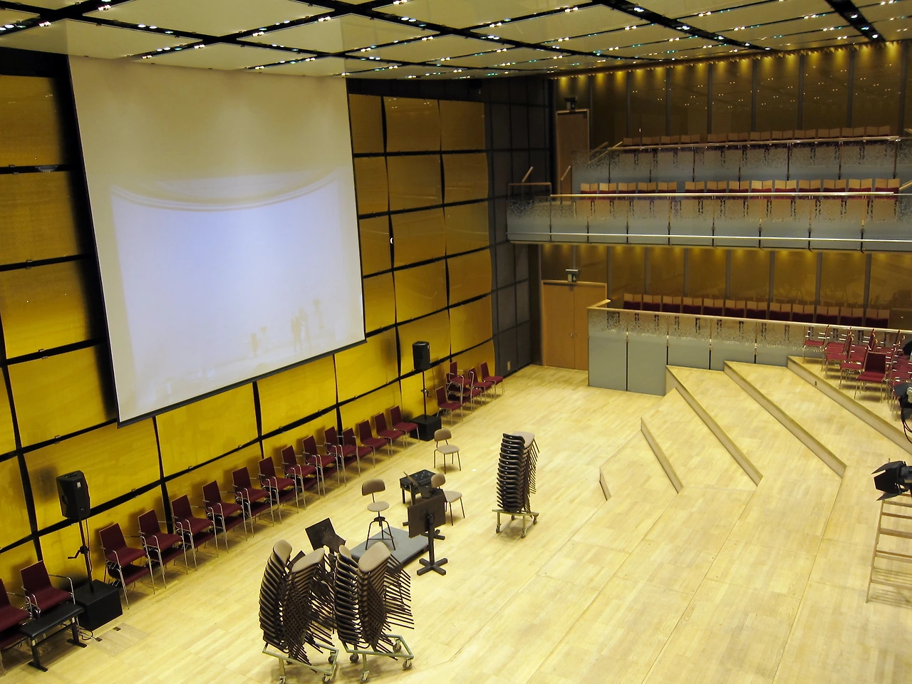 전통적 구조를 자랑하는 무지크페라인이지만, 리허설룸은 굉장히 세련되게 꾸며져 있는 것이 반전이었다. (리허설이 용이하도록) 황금홀과 동일한 사이즈의 무대로 설계된 이곳은 반사판을 설치해 연주자들이 자신의 연주를 들을 수 있을 뿐 아니라 객석에서 자신의 모습이 어떻게 보이는지 볼 수 있다고 한다. 이 리허설룸은 리허설'만'을 위해 사용하기엔 너무도 좋은 공간이라 종종 작은 공연을 열리기도 한다고.
