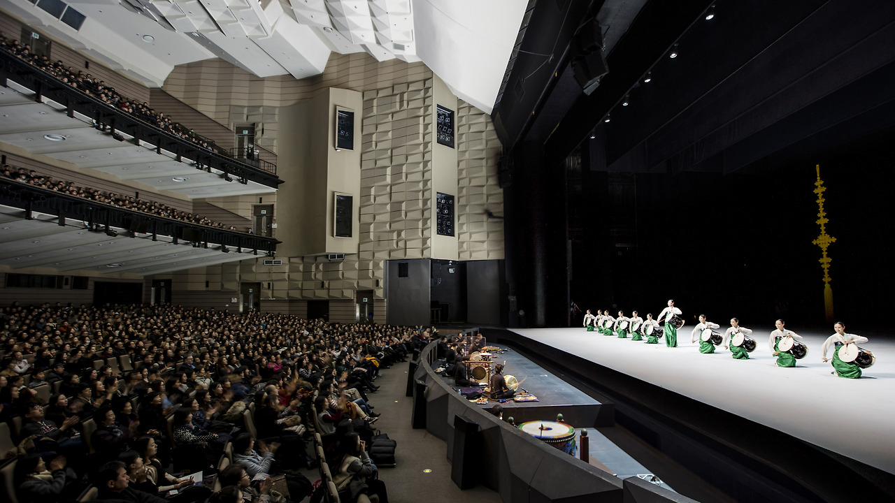규모에 응하기라도 하듯 무대는 무척 아름답다. 여러 색과 문양이 섞여있는 궁중의 복색에서 대부분의 색을 제거하고 단색화를 보는 듯 단정하게 구성했다. 민속무용과 종교무용의 의상도 하나의 색을 설정하고 그에 맞게 새로 디자인했다. 별다른 장식과 꾸밈없이 조명과 몇 개의 스크린, 대형 매듭으로 구성한 무대도 인상적이다.