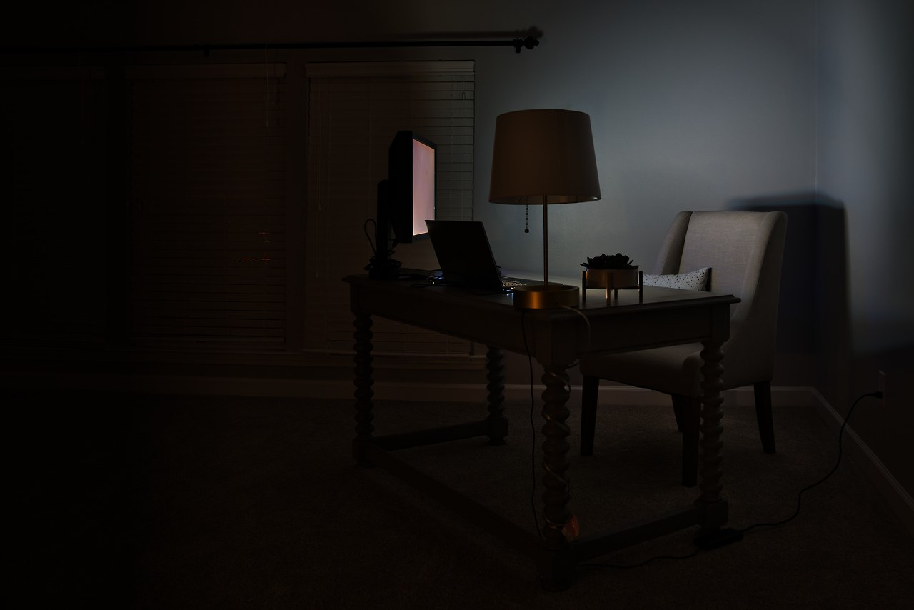 저녁 퇴근 후 홀로 책상 앞에 앉아