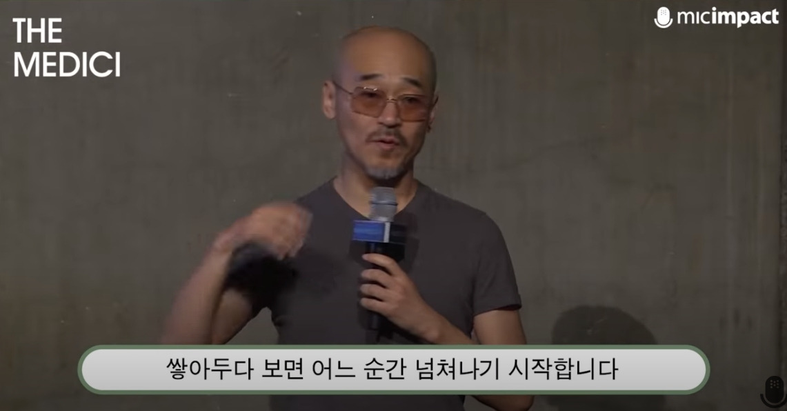 깊이 있는 책들로 차곡 차곡 내면을 쌓아야 하는 이유. 언젠가는 넘쳐나기 때문이다. 참고 <마이크 임팩트>
