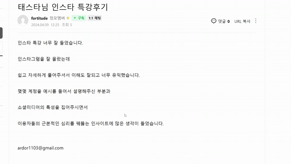 - 1:1 개별 컨설팅 (인스타 방향성 설정)