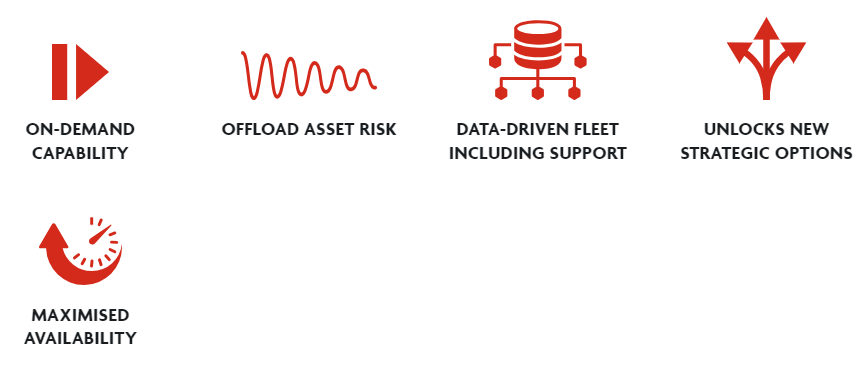 AERSYSTEM™를 통해서 무수히 많은 전략적, 전술적, 병참 측면의, 재정적 이점을 극대화할 수 있다고 말하고 있습니다. AERFLEX®의 장점은 다음과 같습니다. 고객 요구사항에 따라서 작전 운용 성능의 능동적 변경 가능, 운영 과정에서 발생할 수 있는 자산 리스크 절감, 지원을 포함한 데이터 중심의 운항 관리, 새로운 전략적 옵션 적응, 가용성 극대화이라고 합니다.