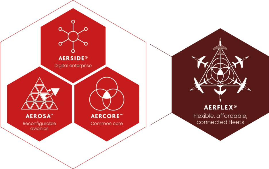 AERFLEX®는 재구성 가능한 전투기 함대를 제공하기 위한 혁신적 방위 경 항공 지원 서비스입니다. AERSYSTEM™를 통해서 무수히 많은 전략적, 전술적, 병참 측면의, 재정적 이점을 극대화할 수 있다고 말하고 있습니다. AERFLEX®의 장점은 다음과 같습니다. 고객 요구사항에 따라서 작전 운용 성능의 능동적 변경 가능, 운영 과정에서 발생할 수 있는 자산 리스크 절감, 지원을 포함한 데이터 중심의 운항 관리, 새로운 전략적 옵션 적응, 가용성 극대화이라고 합니다. AERFLEX®은 실제로 모듈러 디자인에서의 모듈 조합 결과로 만들어진 제품군의 형태로 볼 수 있습니다.