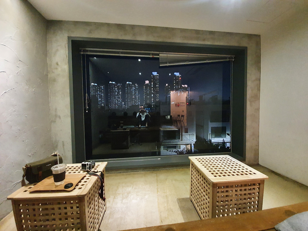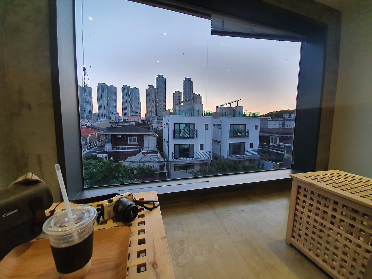 매일 뭔가를 하느라 항상 바빴기 때문에 아무것도 하지 않는 것만으로도 휴식이 되었다. 마음에 여유가 생겼다. 조금 아쉬운 부분도 있었다. 앉는 자리가 의자가 아닌 평상으로 되어 있어 불편했고 또 내가 앉은 자리에 앉으려고 들어왔다가 나를 보고 다시 나간 커플이 한 세 커플 정도 있었는데 이 넓은 자리를 혼자 차지하고 있어 괜히 눈치가 보이기도 했다. 카페 분위기와 어울리지 않는 이상한 비트의 음악이 흘러나와 경치에 온전히 집중할 수도 없었지만 그래도 괜찮았다. 일탈을 하고 있는 것만으로도 전혀 색다른 기분을 만끽할 수 있었다.