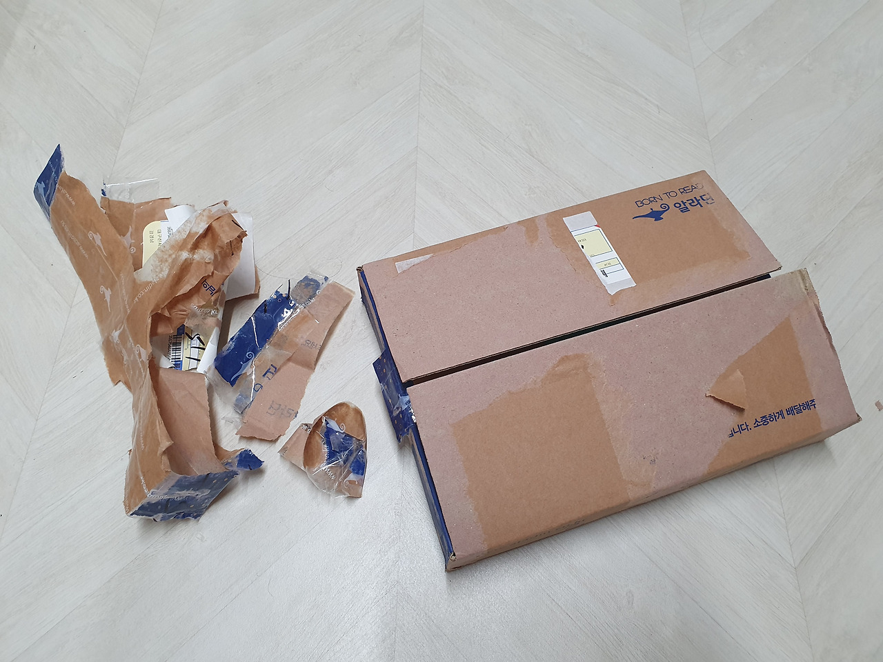 3. 박스, 스티로폼에 붙은 테이프 제거하기