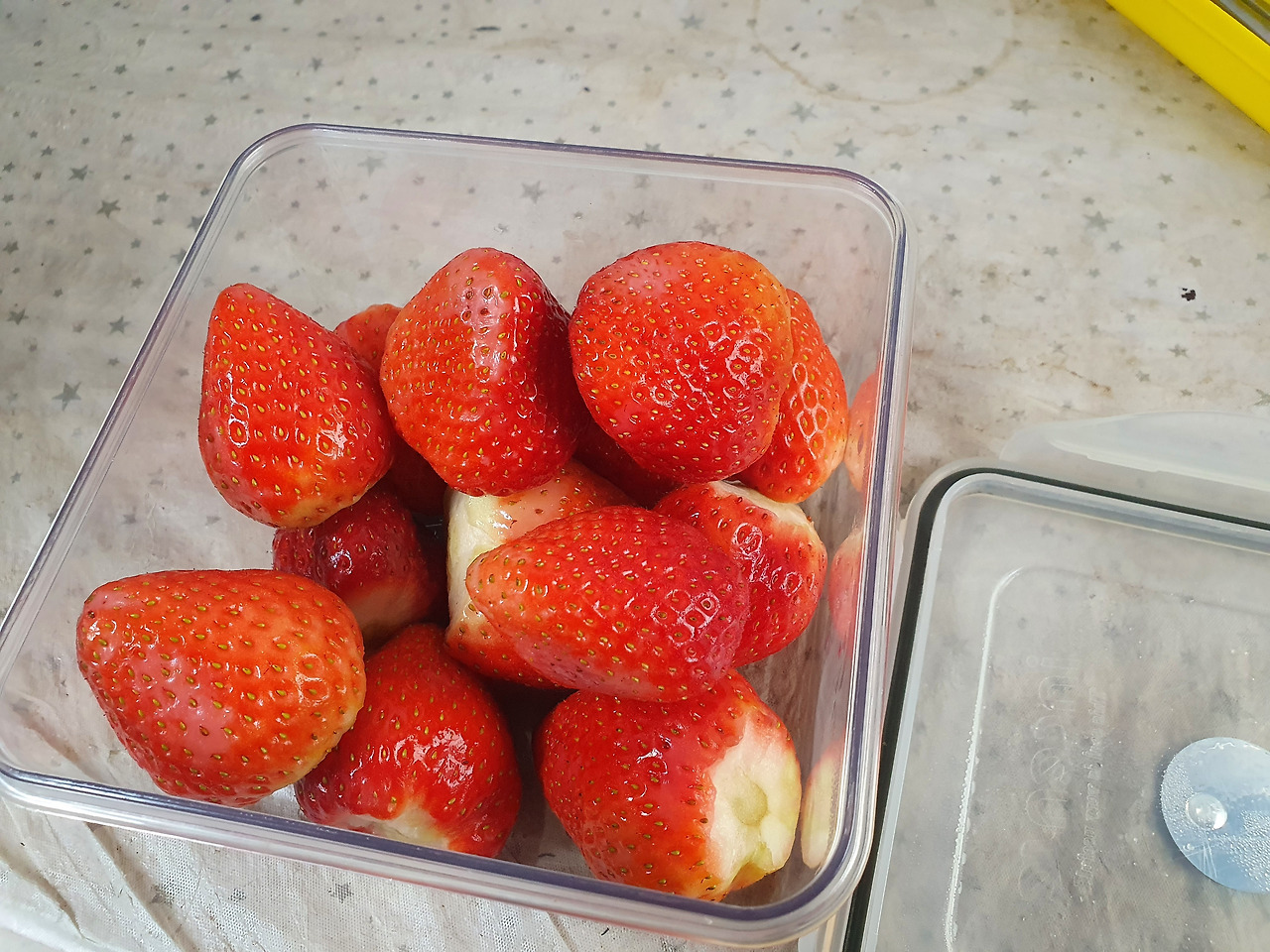 얼마 전에는 간식으로 먹을 딸기를 한 소쿠리 샀다. 아침에 딸기 꼭지를 따고 물에 담가 깨끗이 씻은 후 반찬통에 담았다. 통에 딸기를 가득담고 뚜껑을 닫으려다가 문득 그런 생각이 들었다.