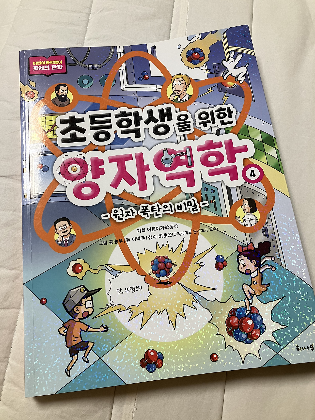 우리 둘만의 북클럽을 시작했는데 네가 처음 고른 책이 양자역학이라니! 학습 만화라고는 하지만 이 책을 읽으면서 머리가 어지러웠어. 엄마는 수학이 잔뜩 나오는 과학 이야기는 솔직히 어렵지만 요즘 꽤 관심있는 주제기도 해서 내심 반가웠단다. 네가 이 책을 골랐다는 건 이 주제에 관심이 많다는 뜻이겠지? 그래서 엄마도 열심히 읽어봤어.