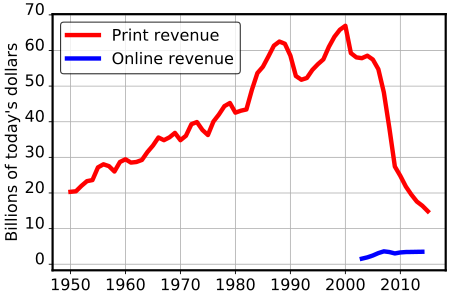 US Newspaper Advertising Revenue Newspaper Association of America published data [위키피디아]