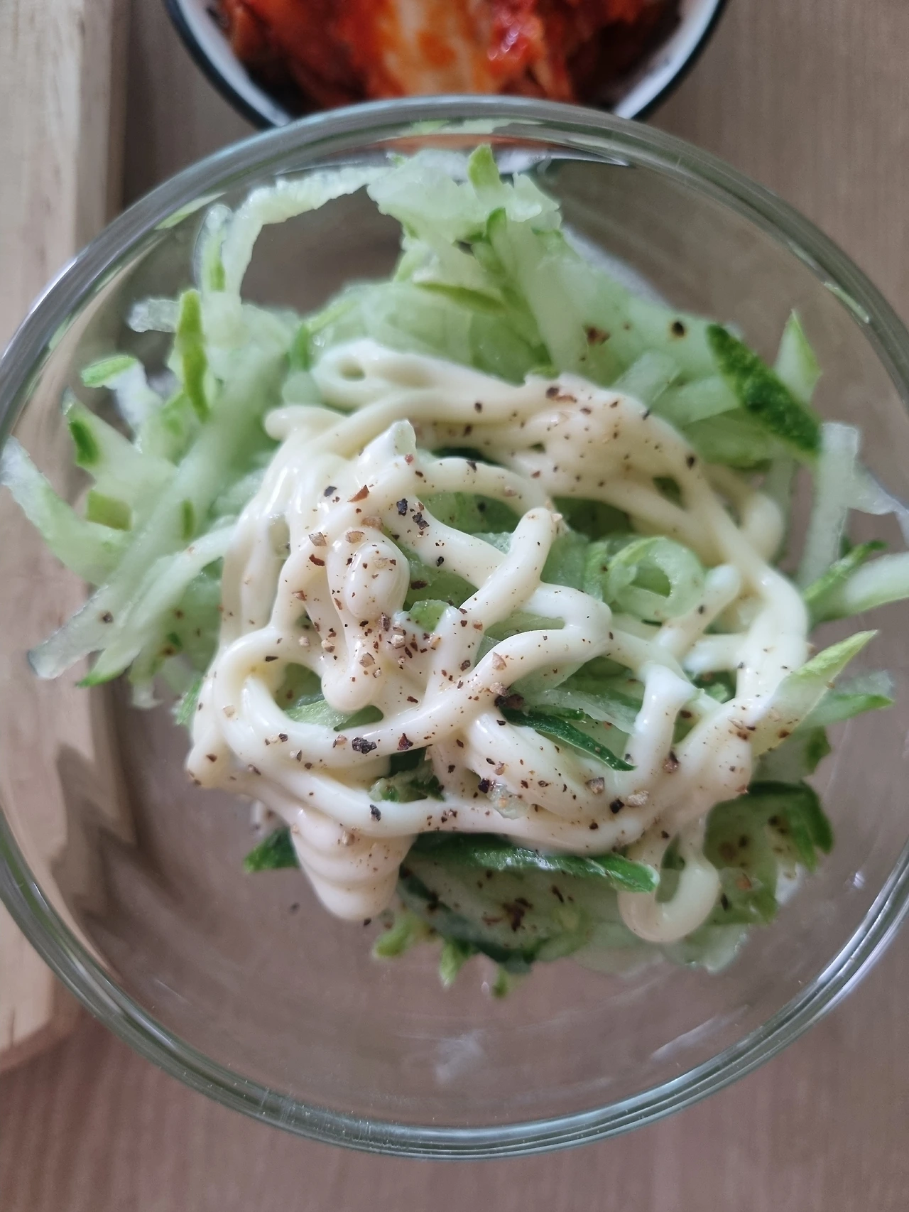 오이샐러드는 마요네즈랑 후추로 간단하게 무쳤는데,